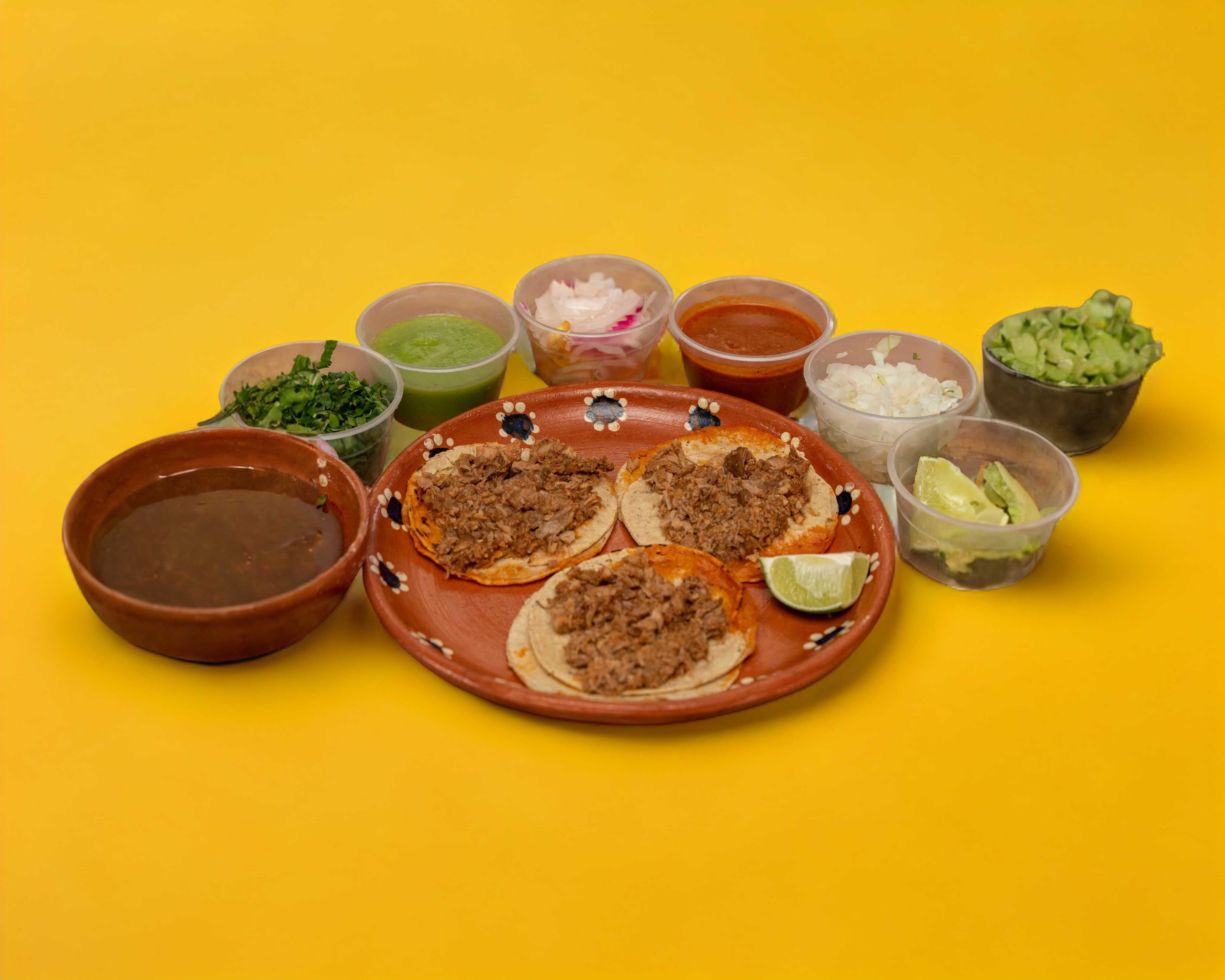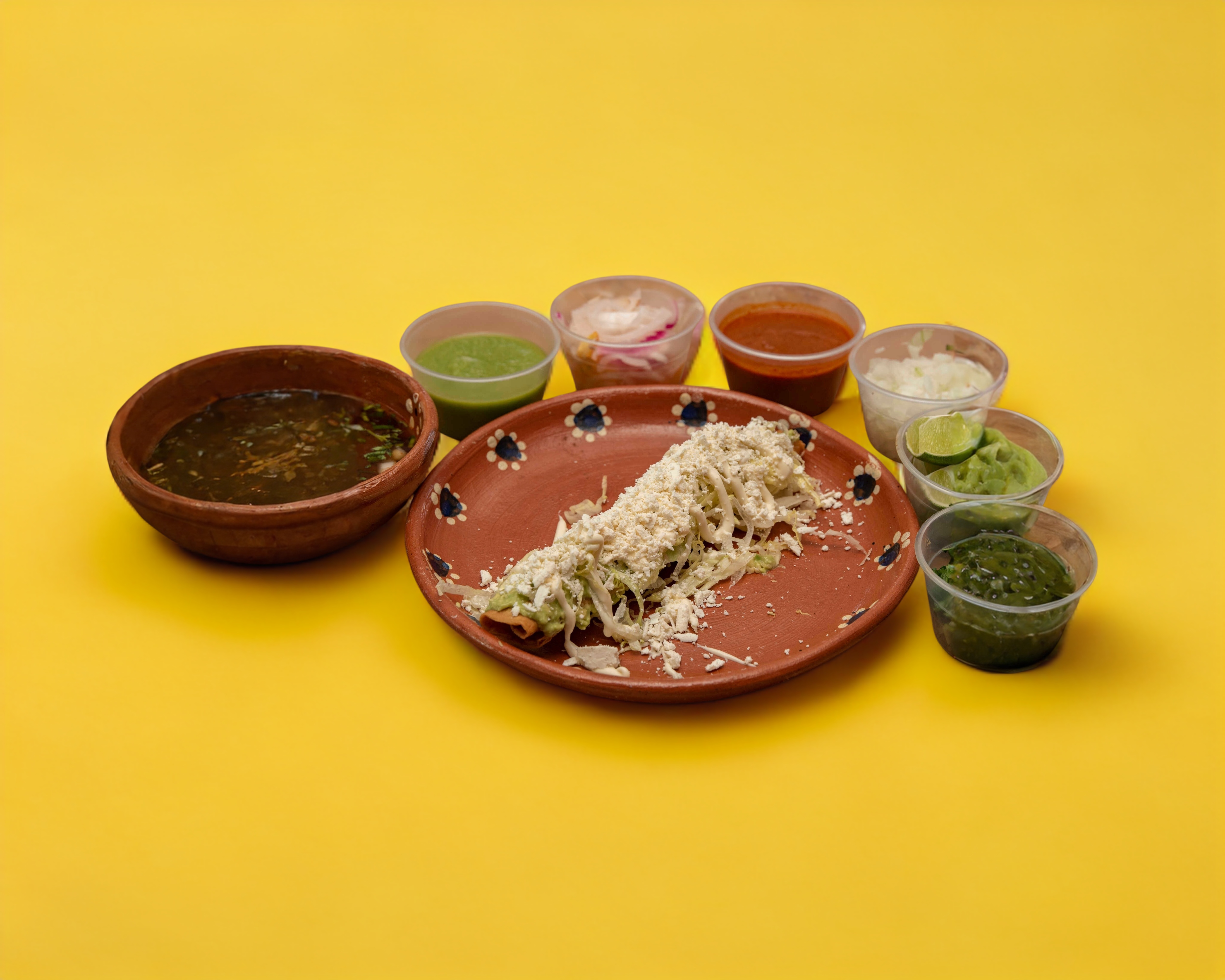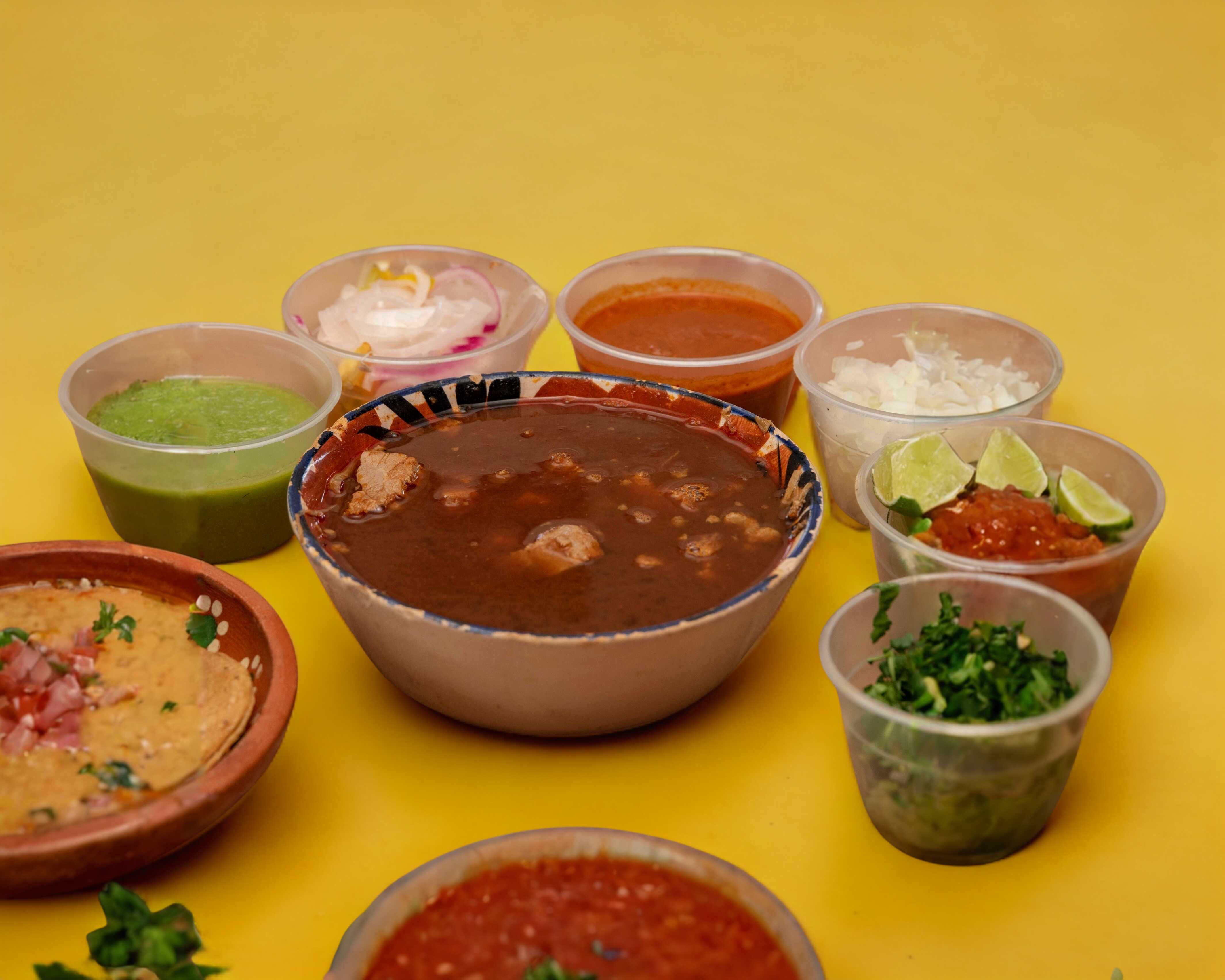 Incluye plató chico (Consomé con carne, tortillas y totopos).