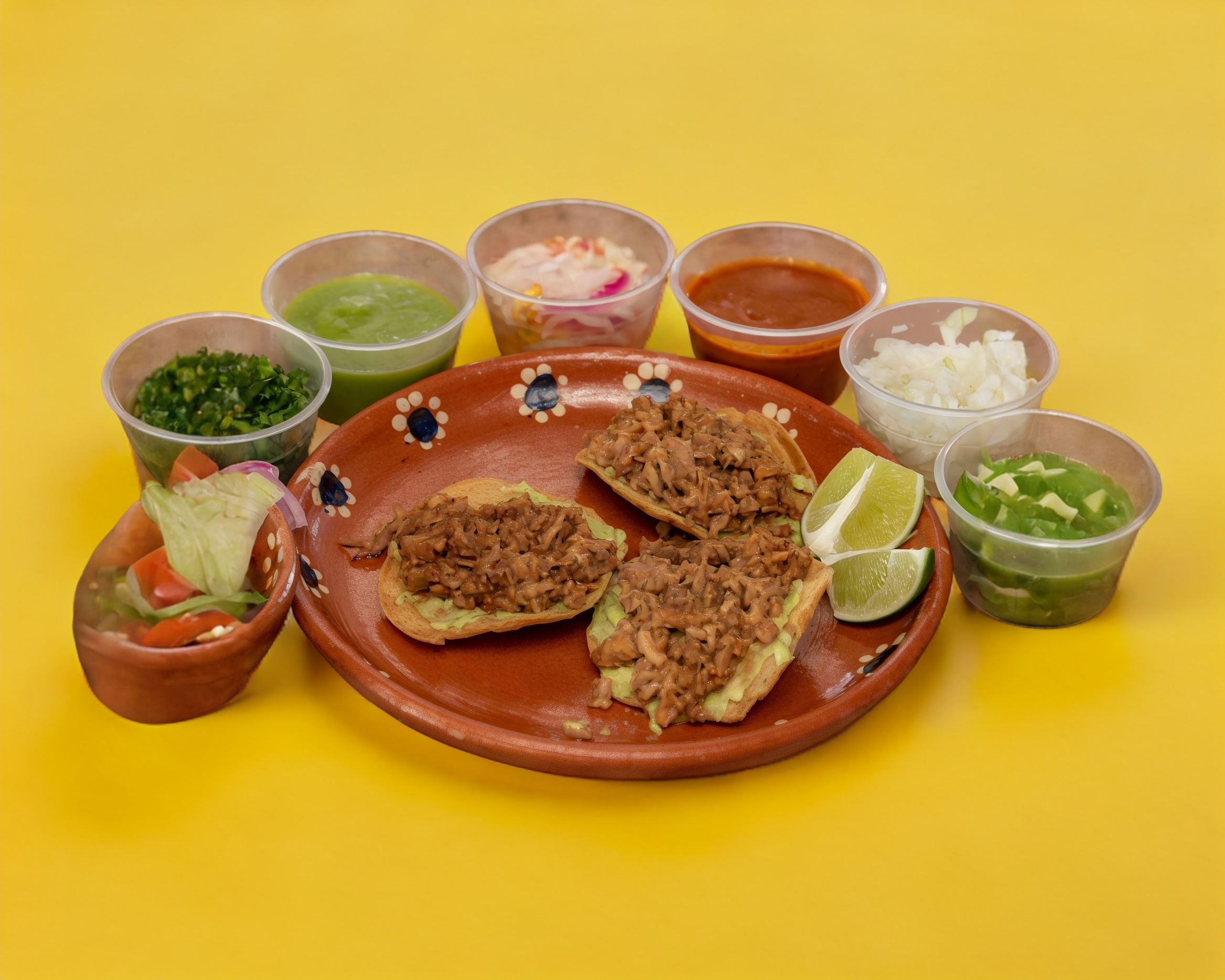 Tostada con Aguacate y Carne*3 + Consomé sin carne.*1