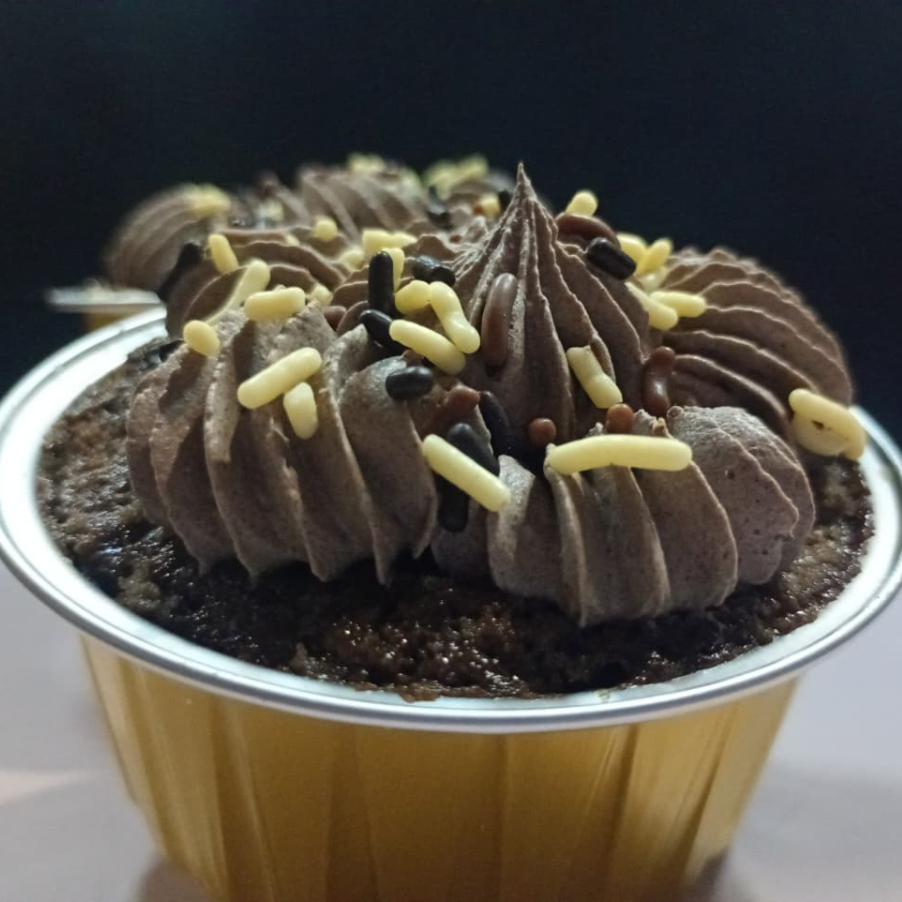 Bizcocho de chocolate envinado, cubierto con cremoso de chocolate y decorado con granillo.