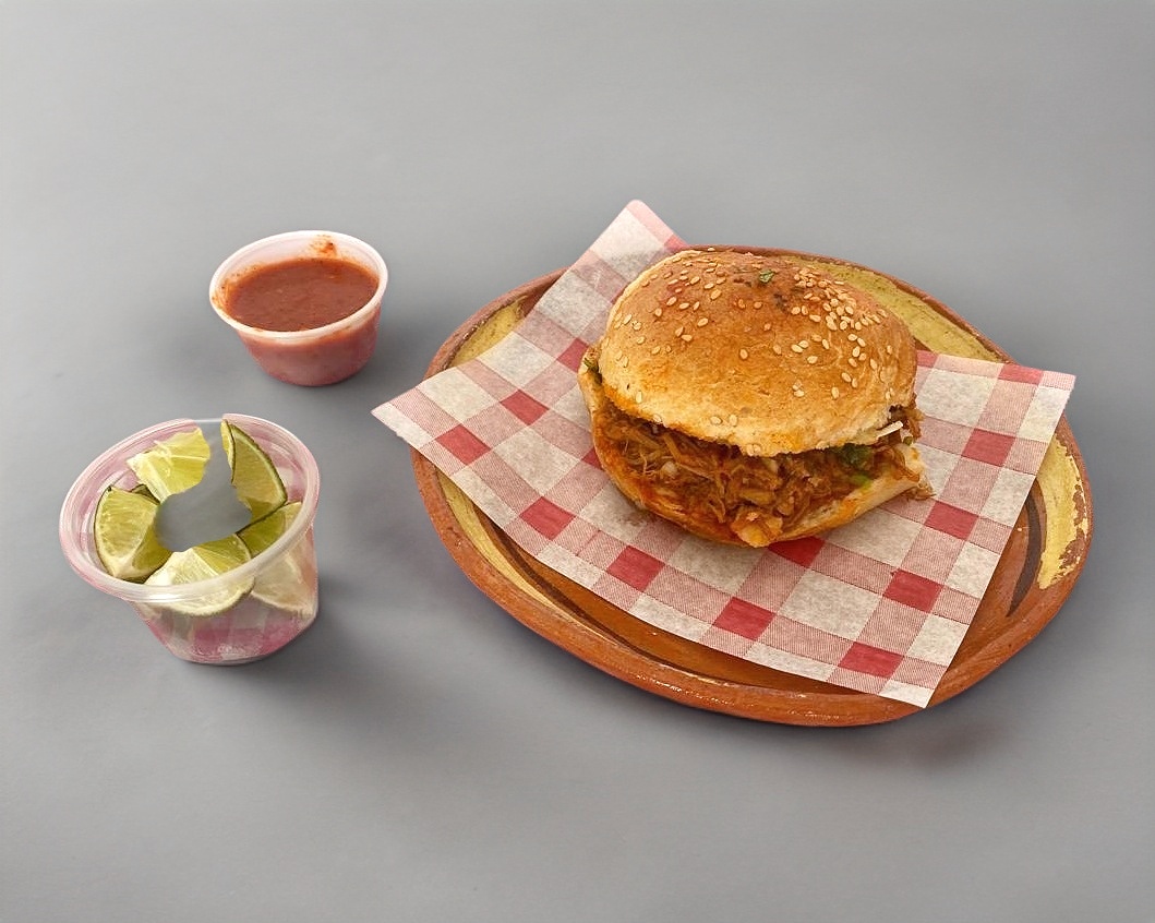 Cemita de Longaniza con cilantro y cebolla.
