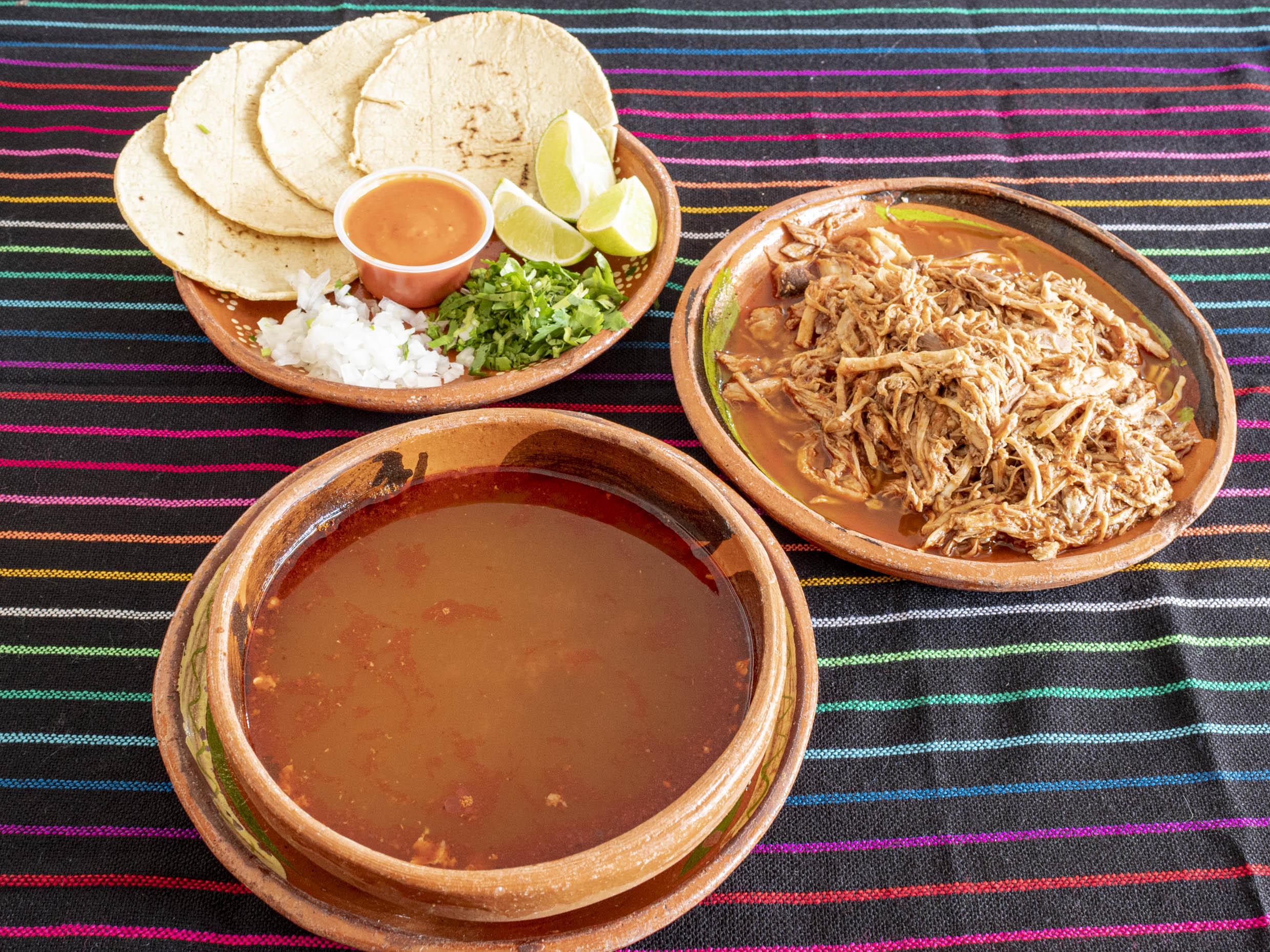 1/2 Kilogramo de Carne*1 + 1/2 Litro de consomé*1 + Tortillas de Maíz*1 + Cilantro, Cebolla, Salsa y Limones.*1