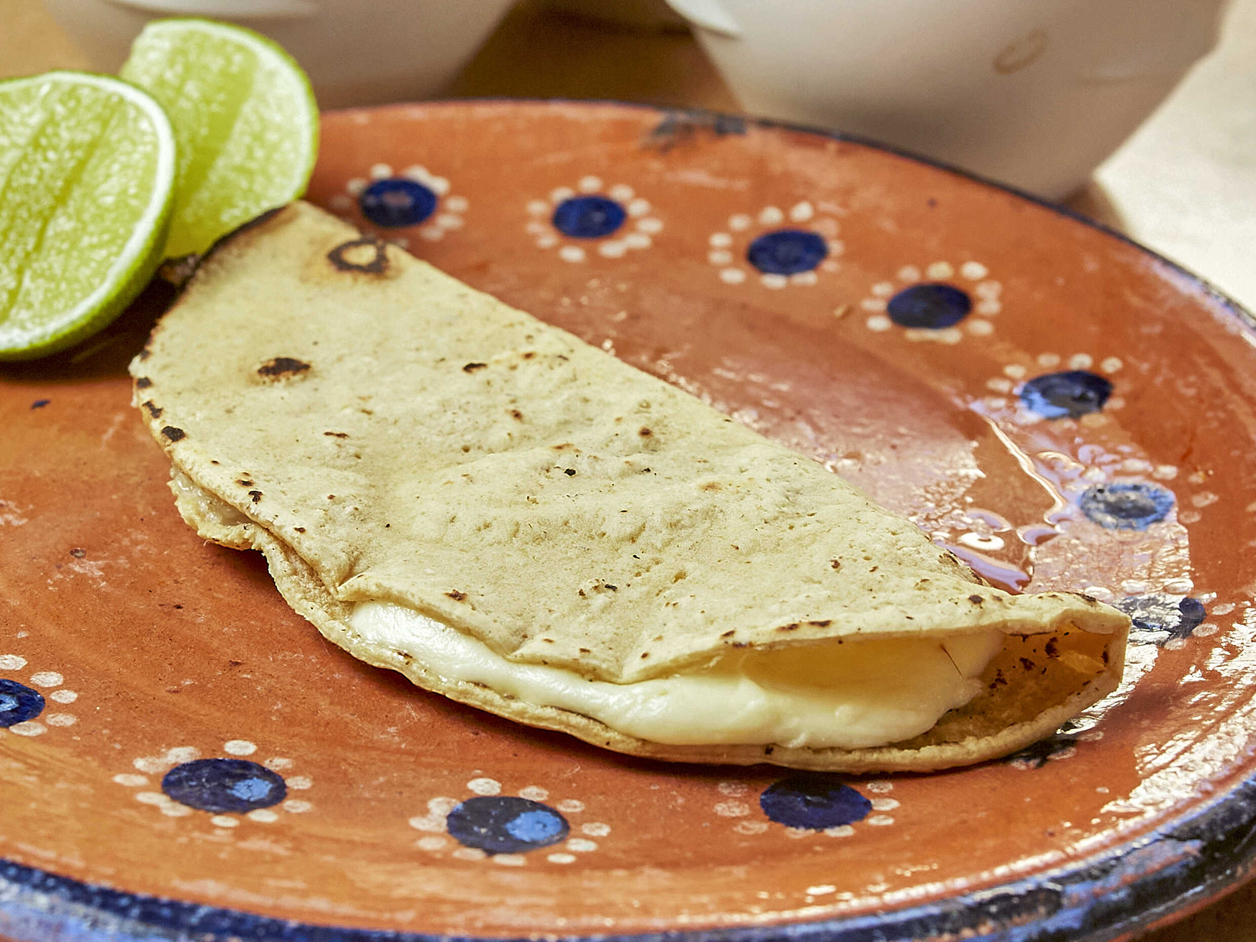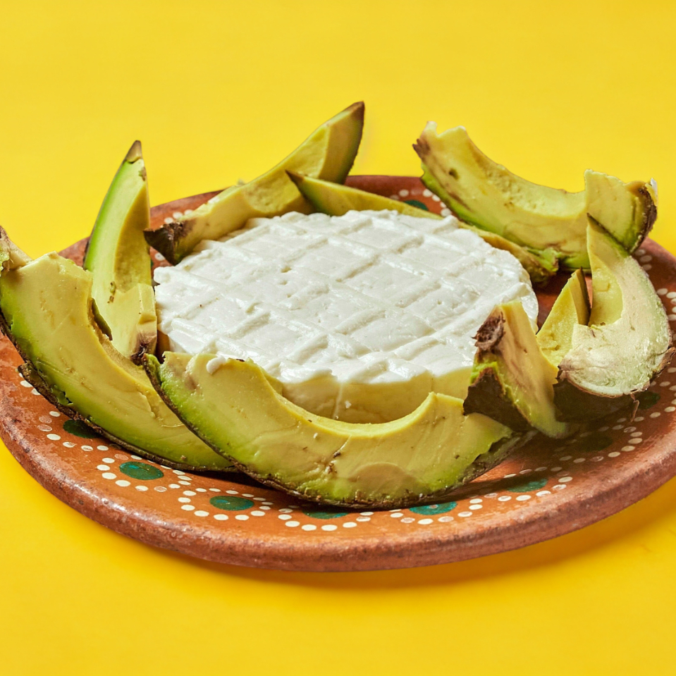 Queso fresco acompañado de aguacate en rebanadas y tortillas.