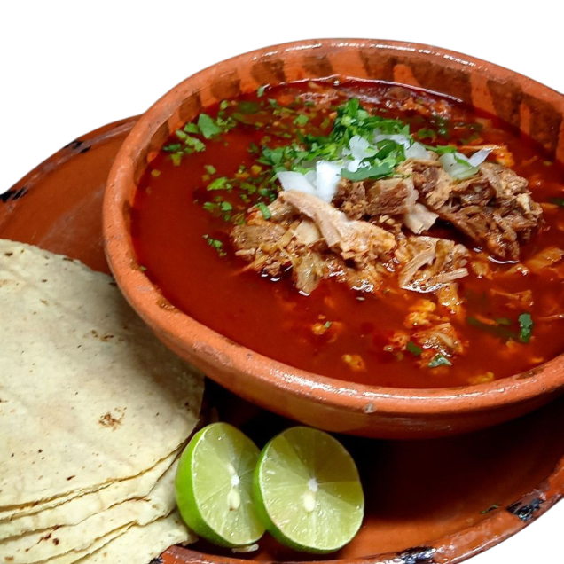Consomé con carne (1 lt) acompañado de ricas tortillas, verduras y salsa.