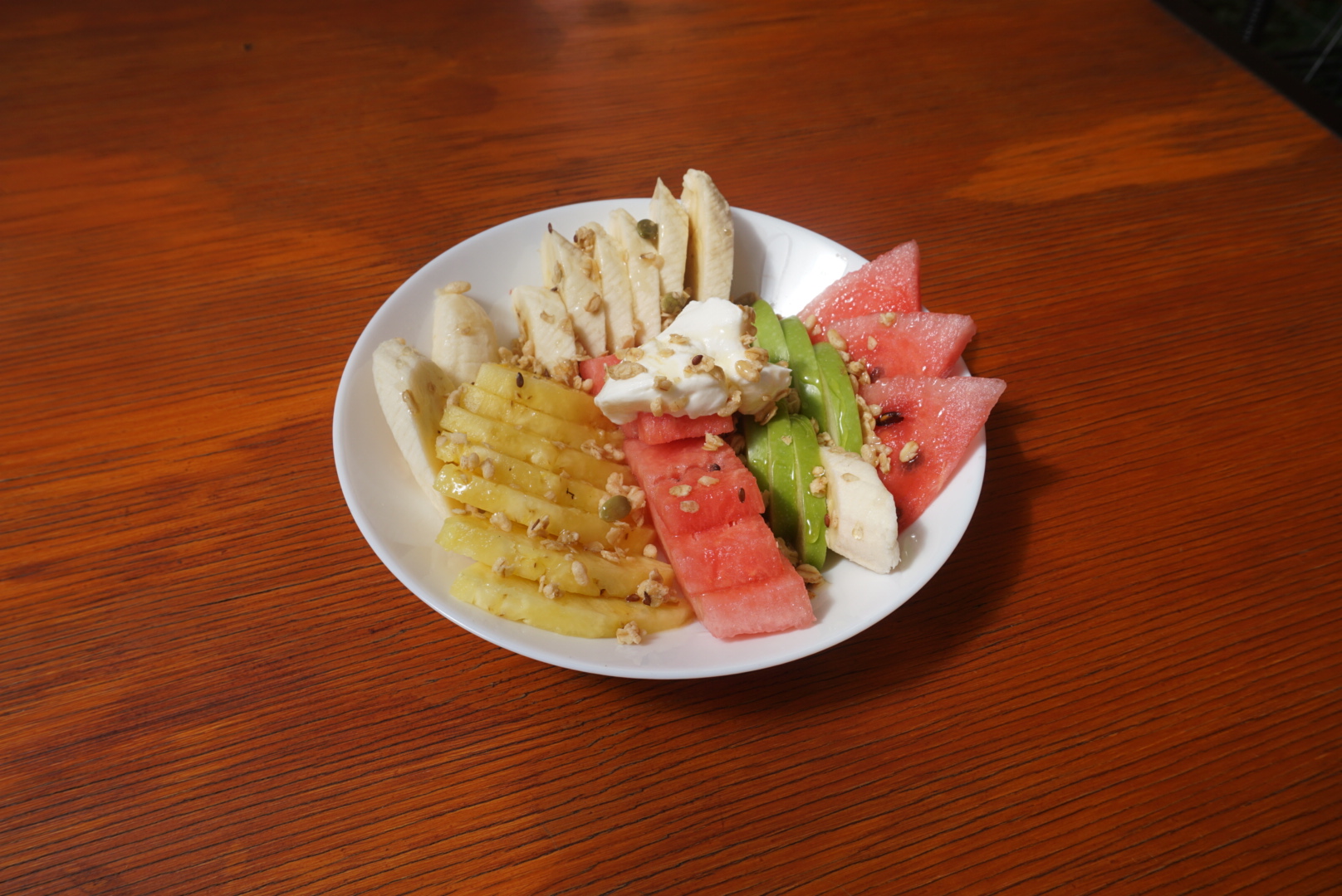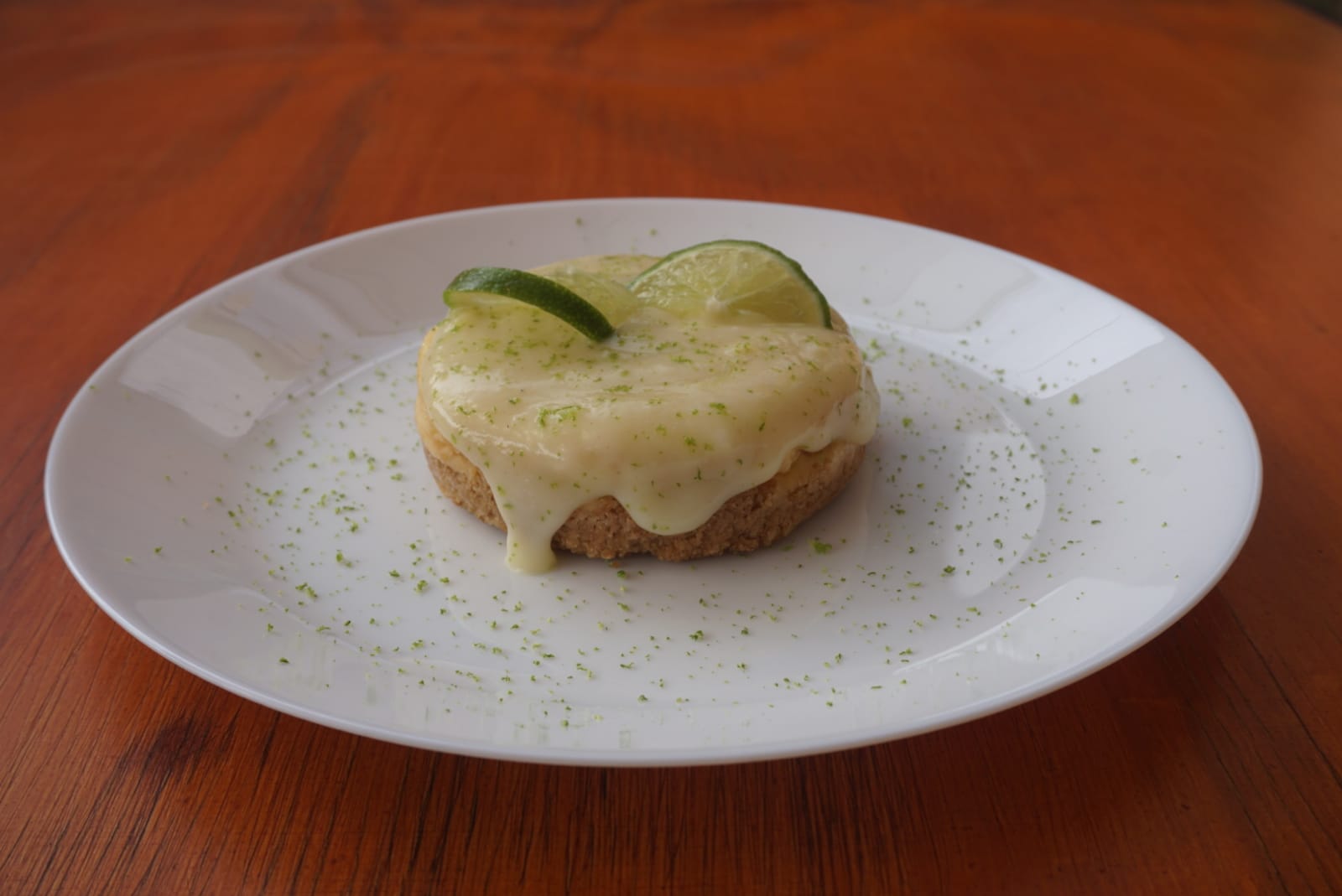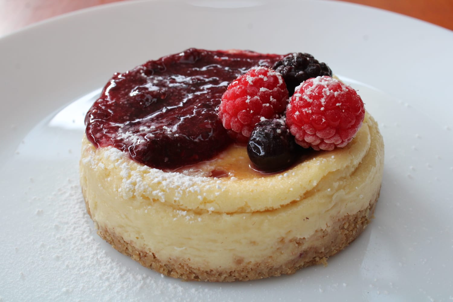 Receta neoyorkina, con fruta de temporada finamente confitada.