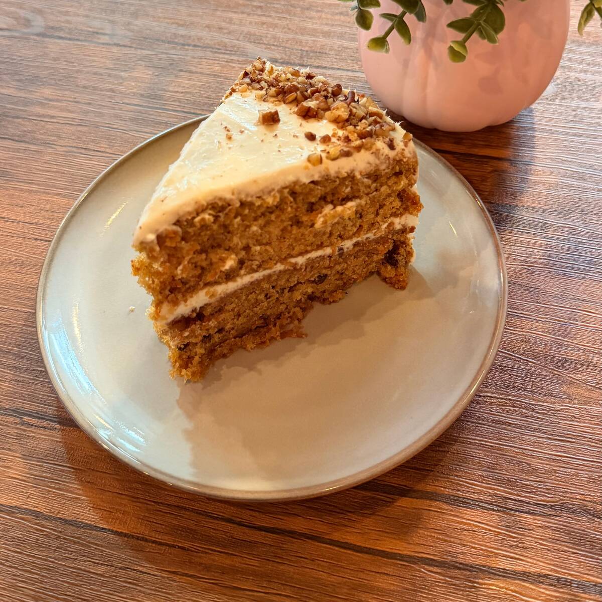 Pastel de zanahoria, con betun de queso crema y trocitos de nuez