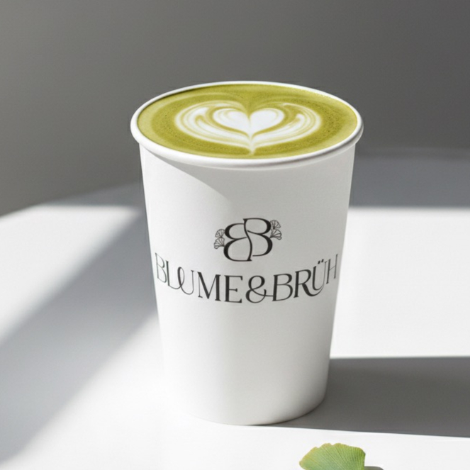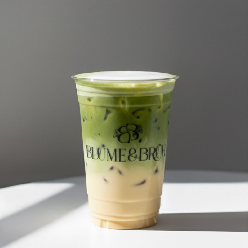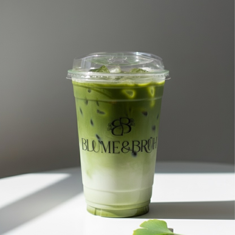 Té verde matcha orgánico con leche, suave y energizante endulzado con miel de abeja. 20 oz