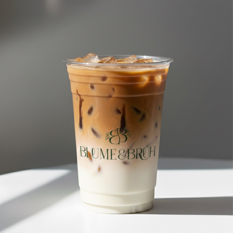 Mezcla de espresso con leche y nuestro jarabe natural de plátano. 12 oz.