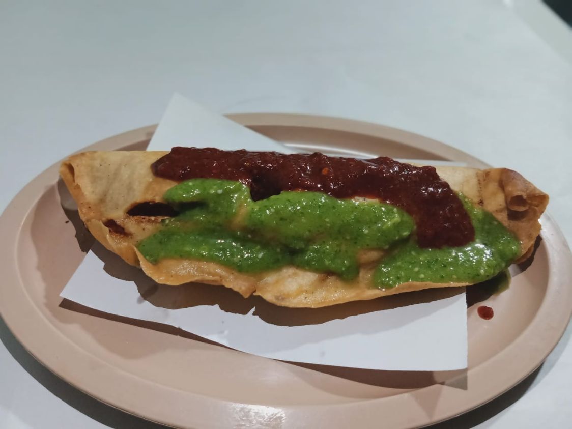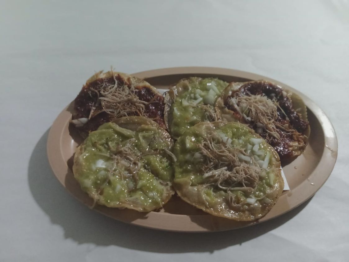 Tortilla frijoles salsa cebolla carne de res e ingrediente ( pollo papá chicharrón quesillo )