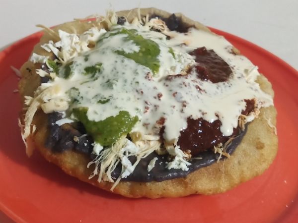 Jarocha, frijoles, lechuga, ingrediente, salsa crema y queso.