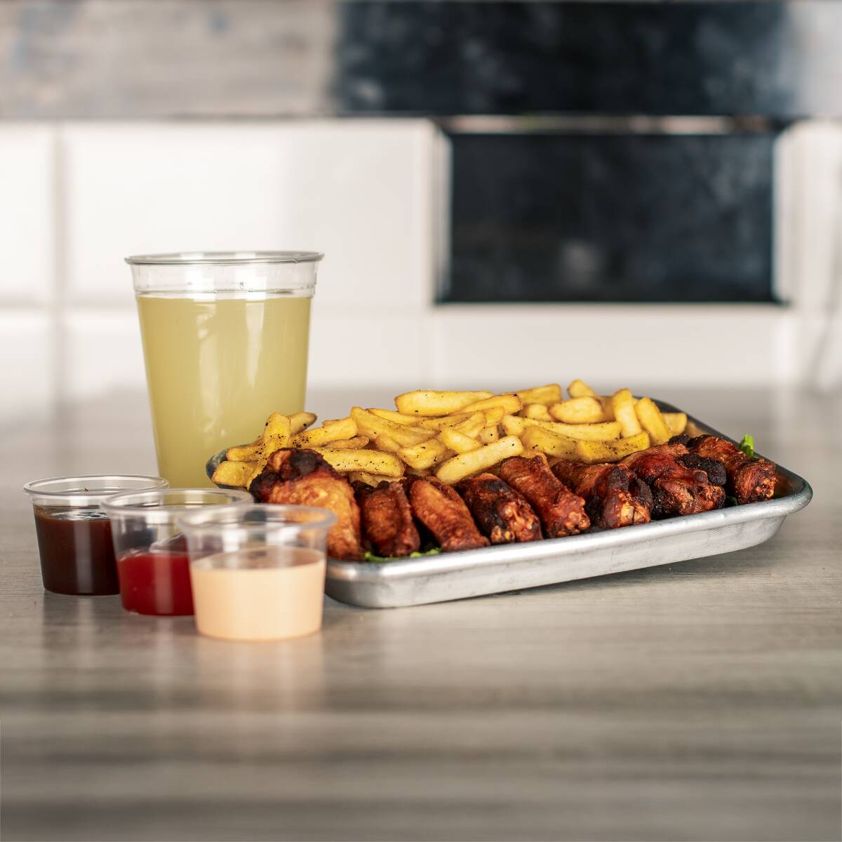 10 alitas bien doradas, bañadas en la salsa de tu elección. Perfectas para compartir. Incluye papas sazonadas y bebida.
