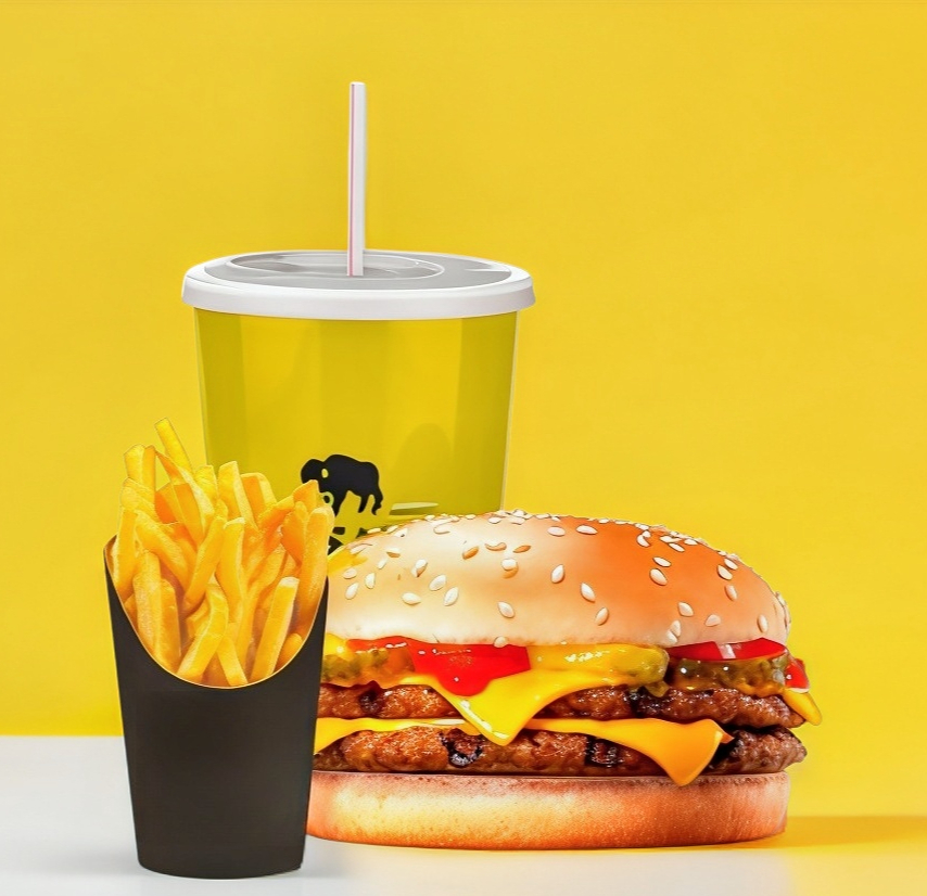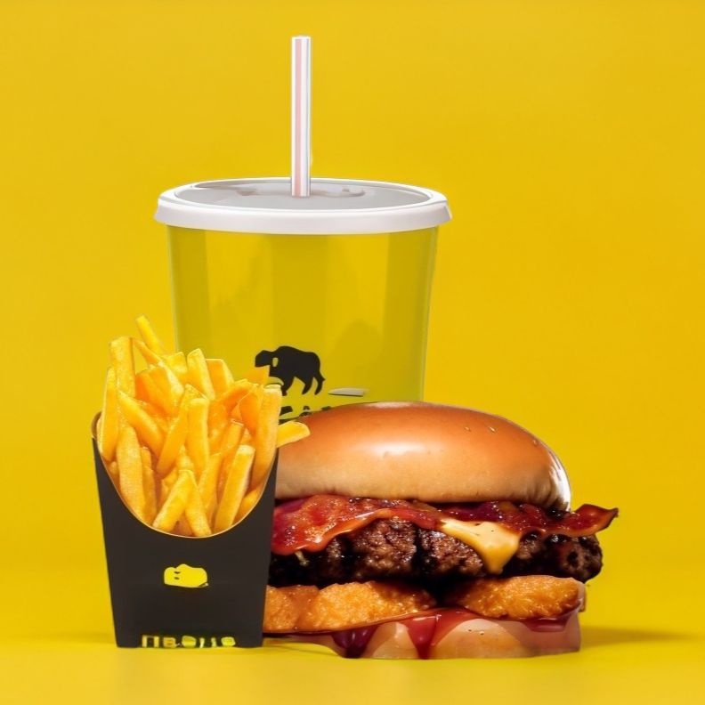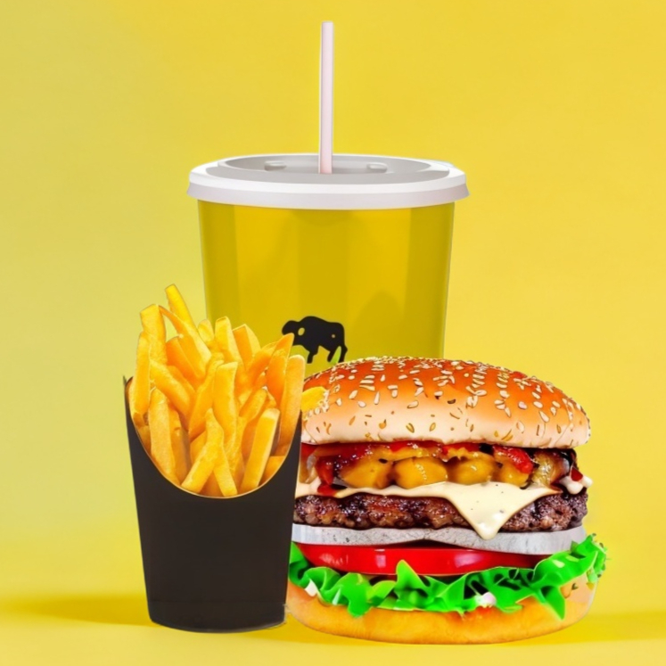 Hamburguesa Gran Búfalo con Papas y Refresco