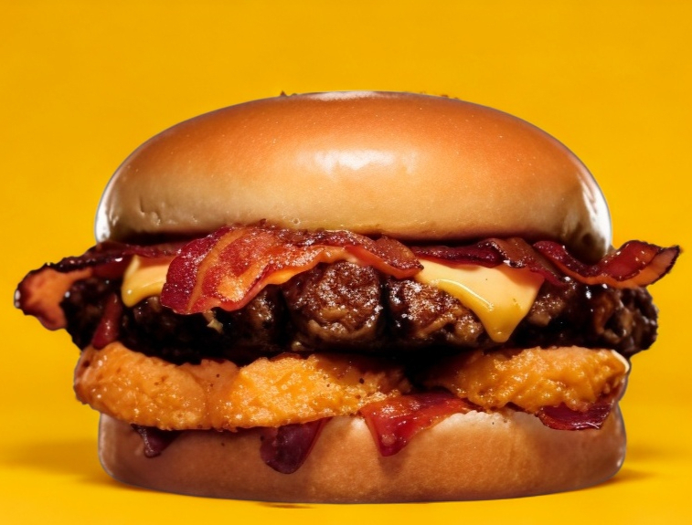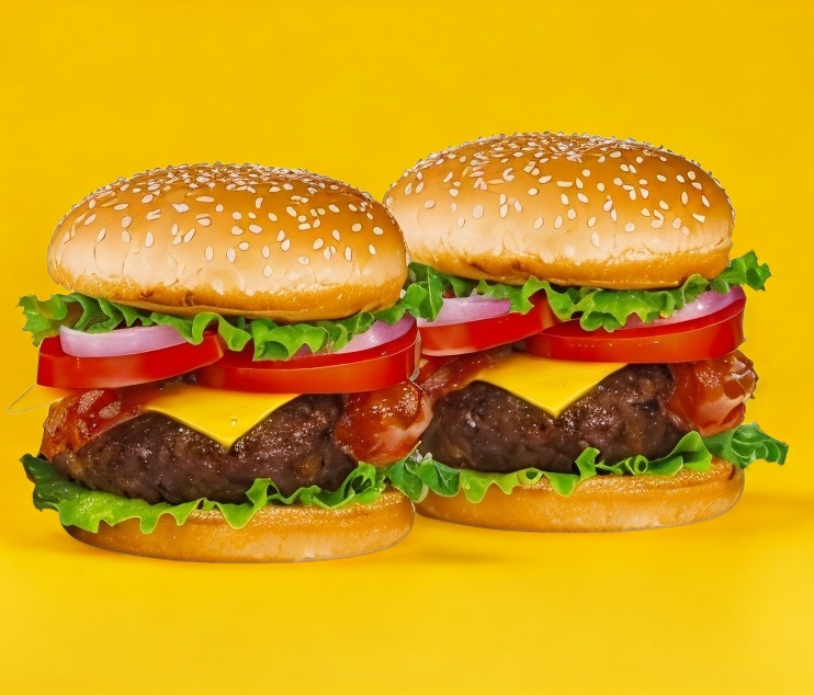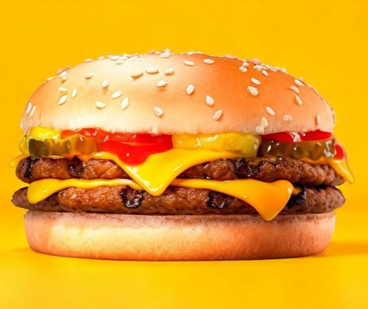 Deliciosa hamburguesa doble carne, doble queso, doble sabor.