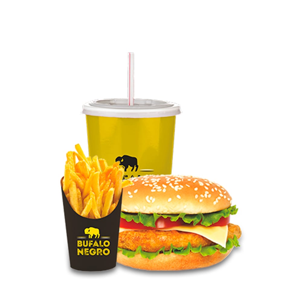 Búfalo 4: Hamburguesa de Pollo, Papas y Refresco
