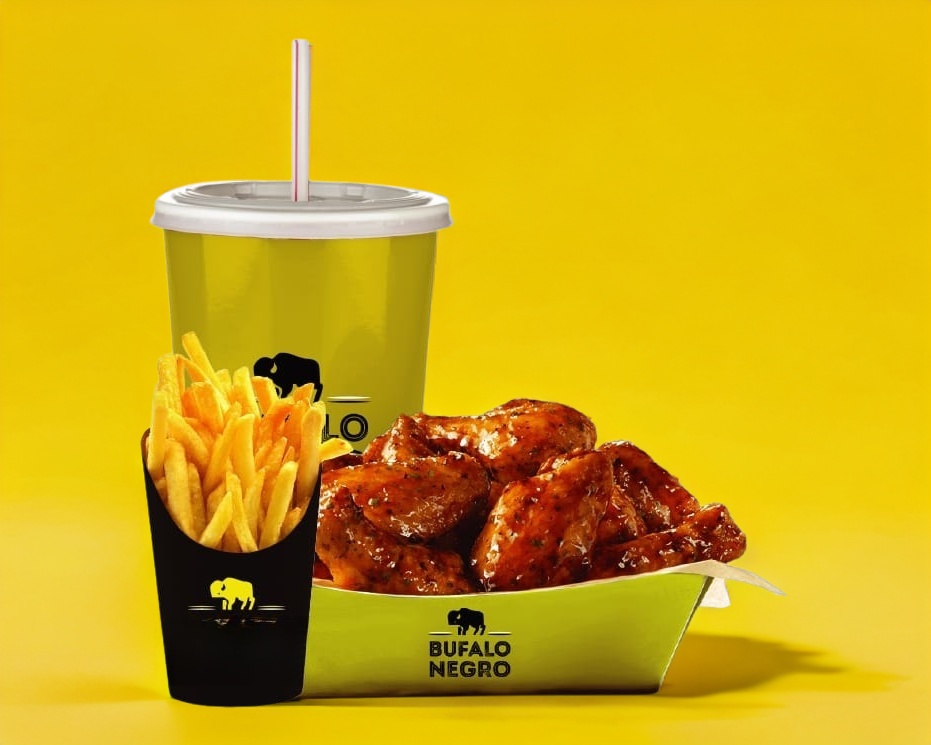 Búfalo 2: Orden de Alitas+Papas y Refresco o Agua.