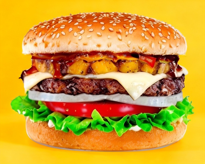 Deliciosa Hamburguesa doble carne, doble queso, doble sabor