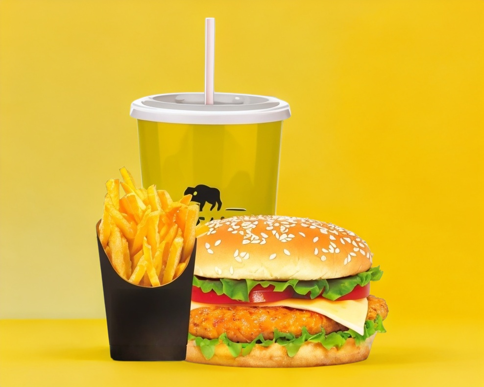 Búfalo 4: Hamburguesa de Pollo+Papas y Refresco