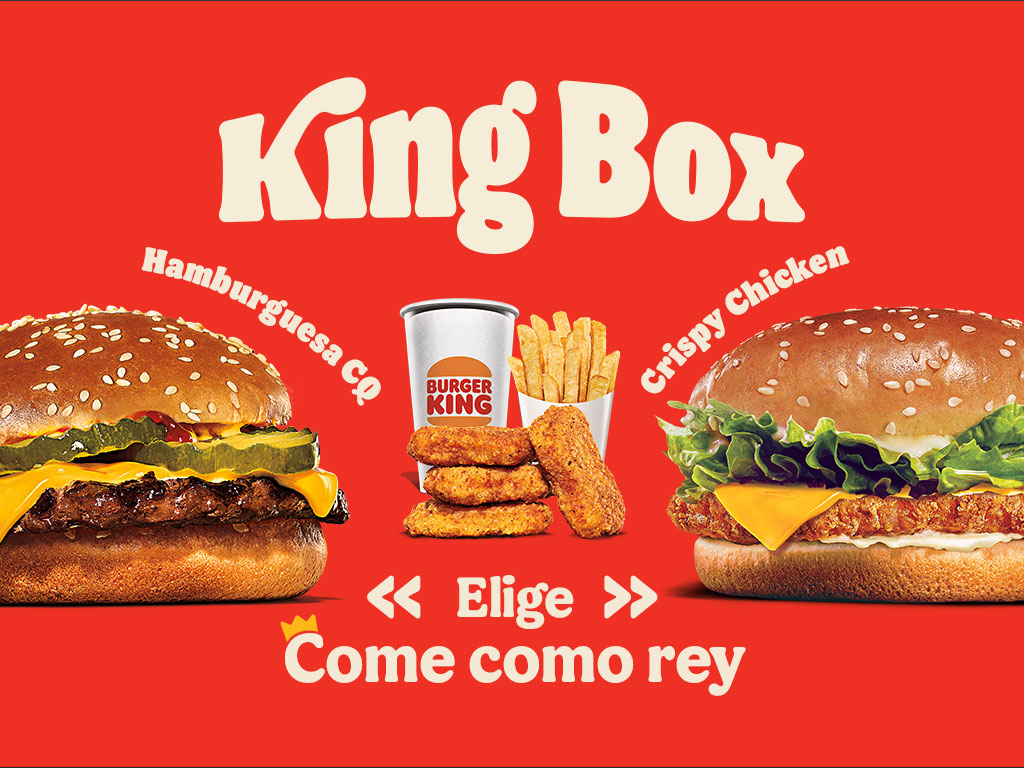Las noches del Rey son para compartir con: 2 Rodeo Burger + 1 Whopper® Jr CON QUESO + 1 Crispy Chicken + 3 papas chicas.