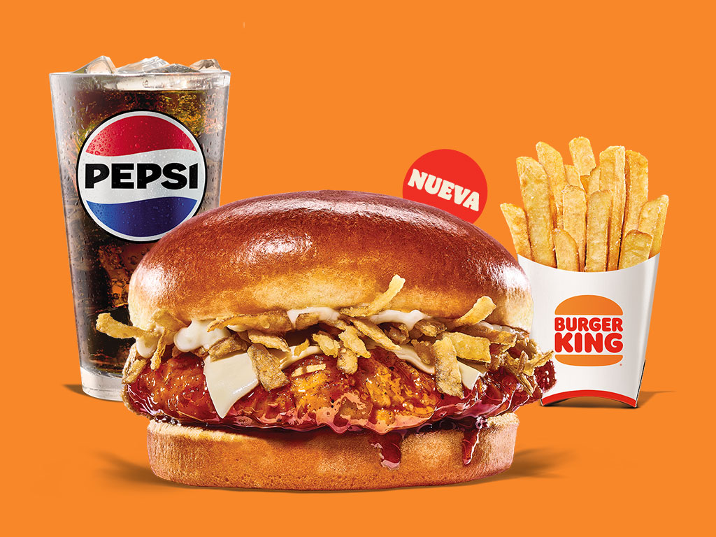 Prueba ahora la nueva Honey Chipotle Crispy King, con crujiente 'pollo buttermilk' cubierto de salsa agridulce Honey Chipotle, acompañado de cebollita crujiente, queso suizo y mayonesa en un pan brioche. Acompañada de papas chicas y refresco.