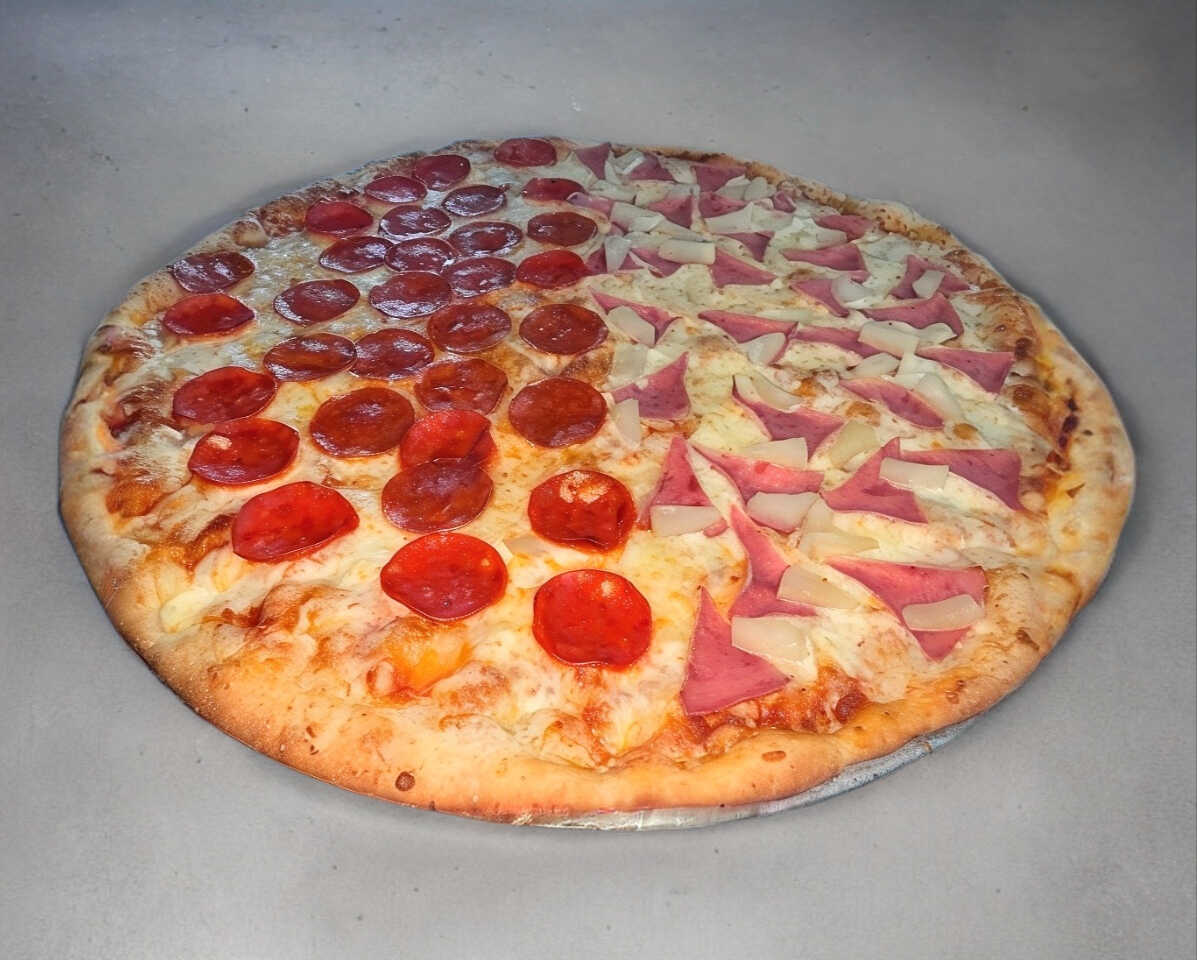 Queso mozzarella, hawaiana y peperoni. 35 cm