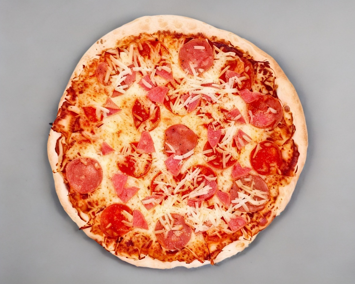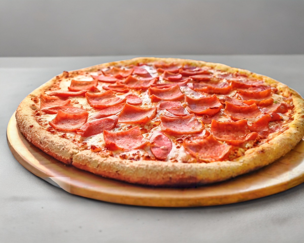 Queso mozzarella, salchicha peperoni y jamón. 38 cm
