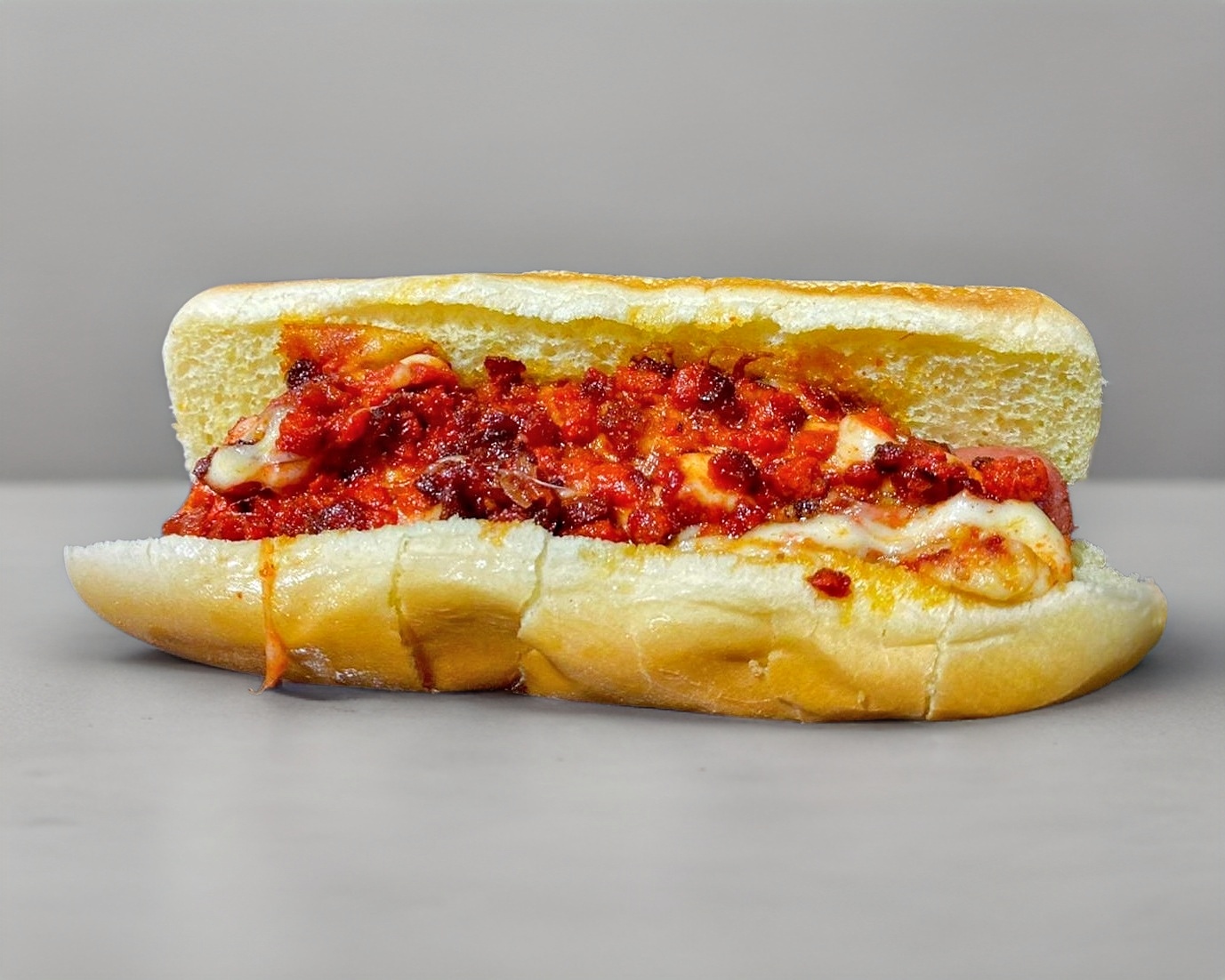 Deliciosa salchicha de pavo, acompañada de quesos fundidos (americano, manchego y quesillo) jitomate, zanahoria, aderezos y picante de la casa.
