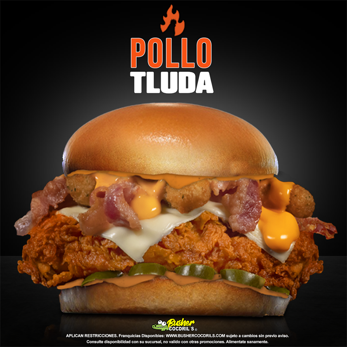 Deliciosa hamburguesa a base de pechuga de pollo 150 g, acompañada de aderezo spicy dip monsta, tocino, dedos de queso, cheesse dip en espiral, queso manchego y jalapeño.