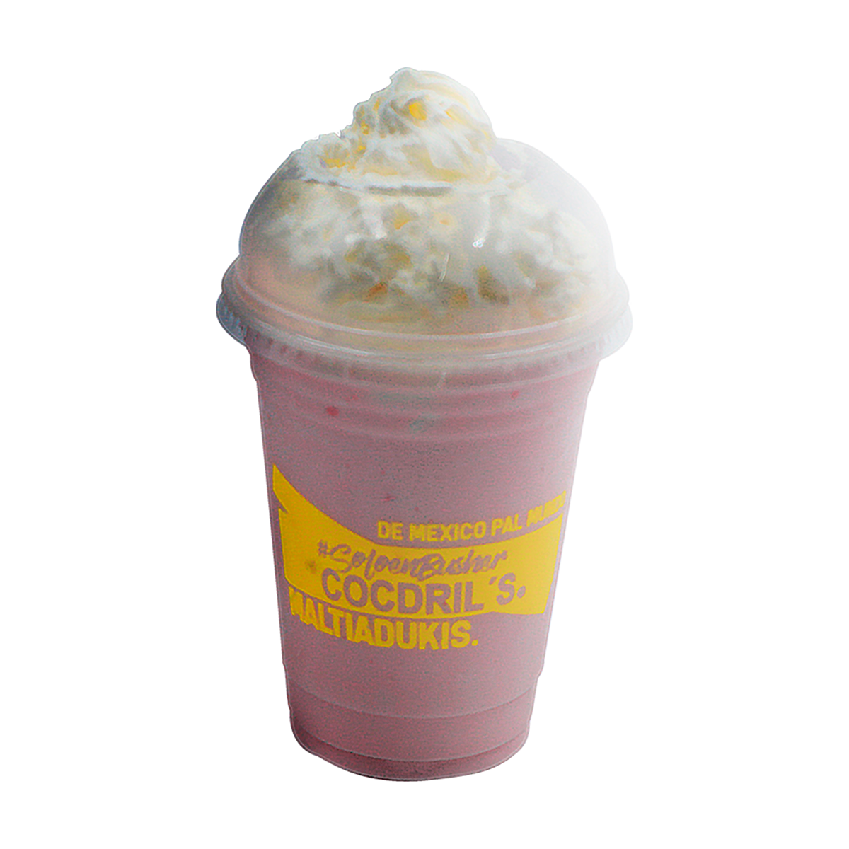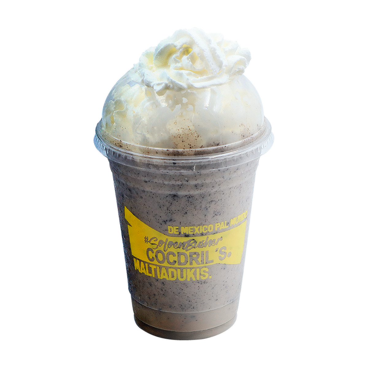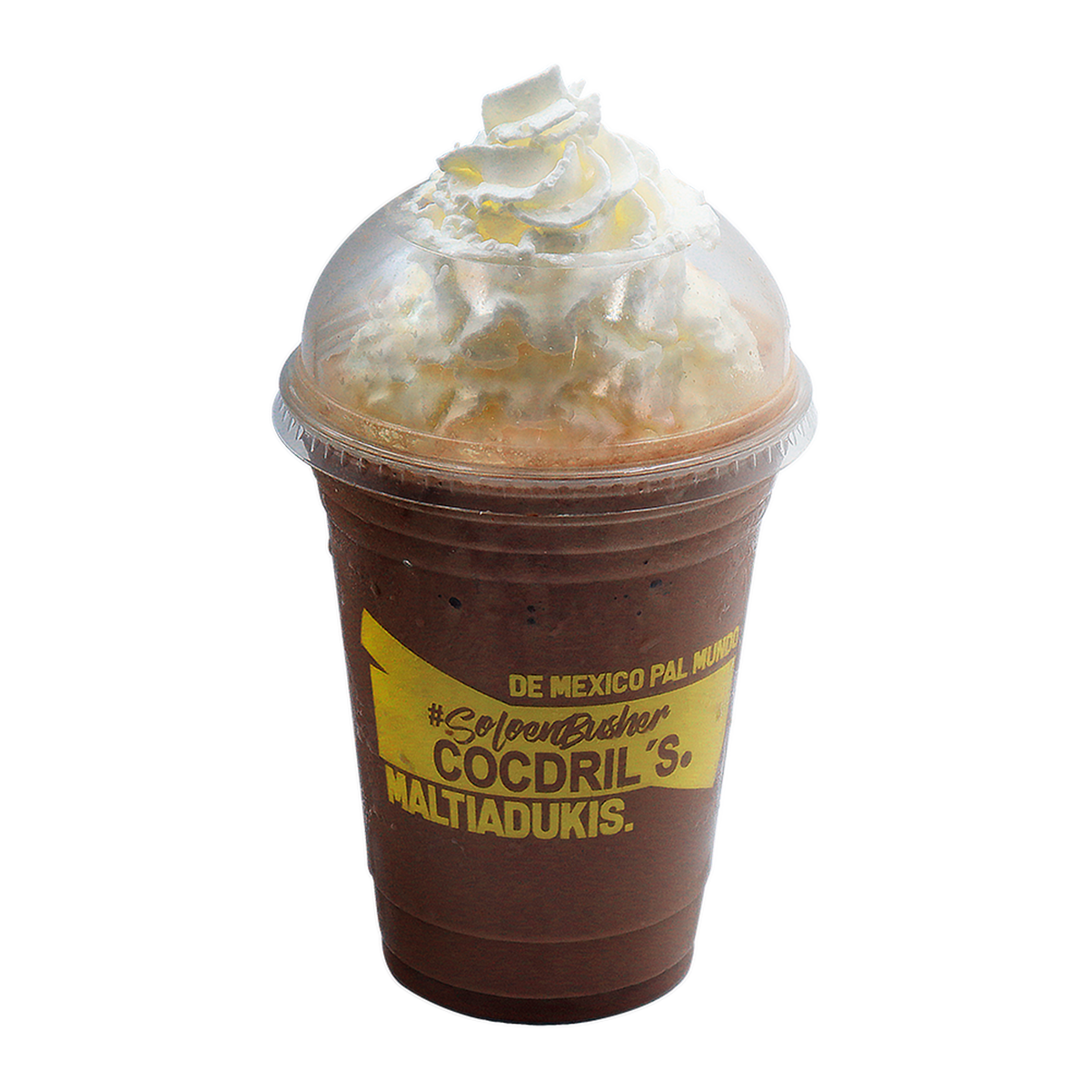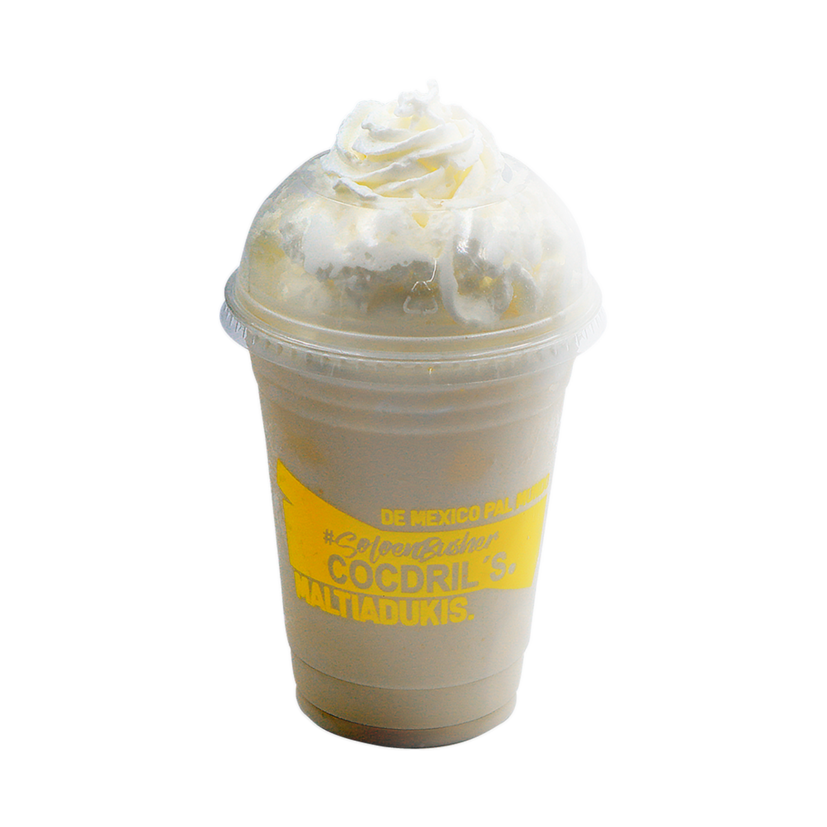 Malteada a base de leche con helado de vainilla, concentrado de Mazapán y crema batida.