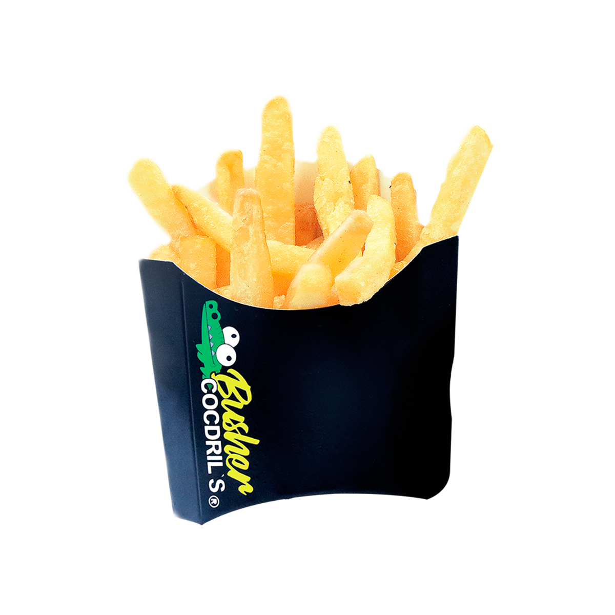 Papas a la francesa con el sazonador a elegir: parmesano ranchero, limón, house, en presentación box y acompañadas de salsa cátsup.