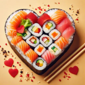 Por dentro: Alga, Arrachera Frita sazonada con Cebolla Frita, Queso Crema y aguacate. Por fuera: Empanizado Crocante y Ajonjoli Blanco tostado con una soyera de salsa tampico como en la foto y una soyera de chiles toreados con soya .