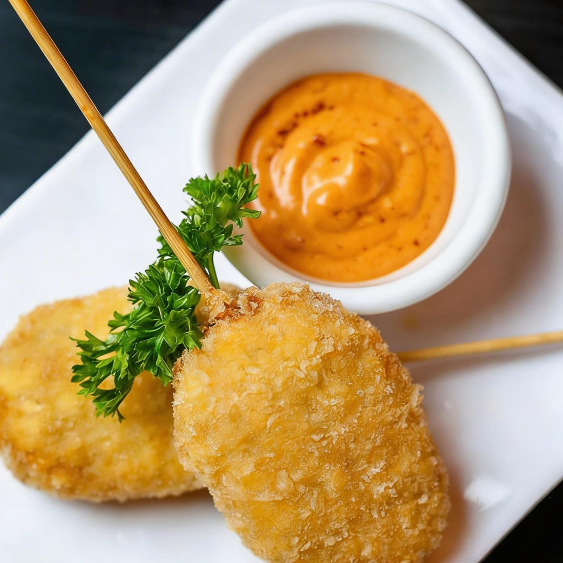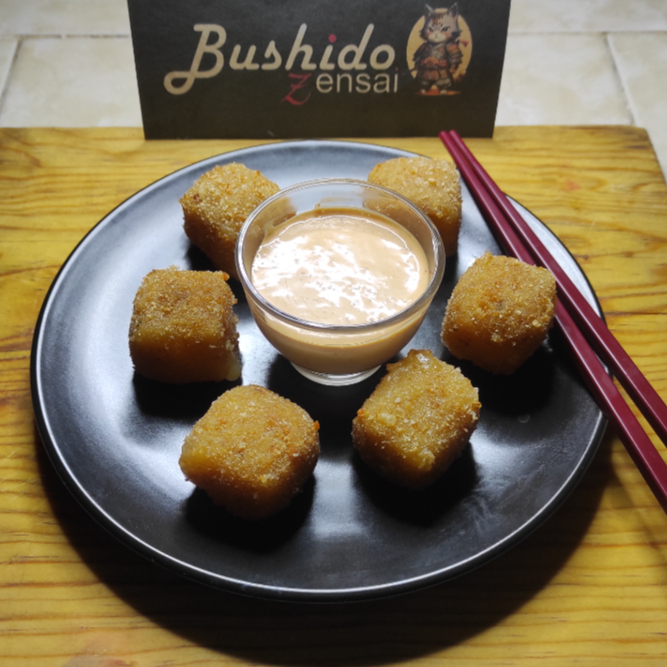 6 piezas de Delicioso Queso Manchego derretido con empanizado crujiente y salsa Kushiage