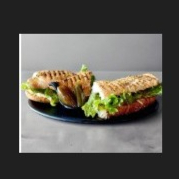 Baguette con un mix de lechugas, queso de cabra, jamón serrano y aderezo de miel