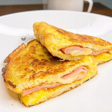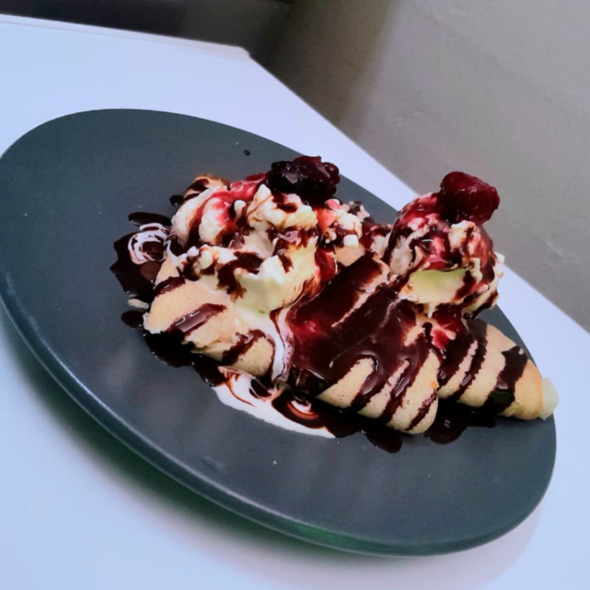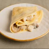 Crepa suave y delgada, rellena de jamón y queso fundido.
