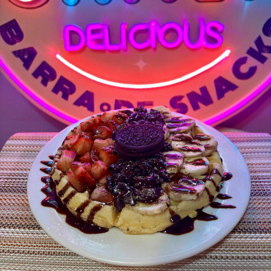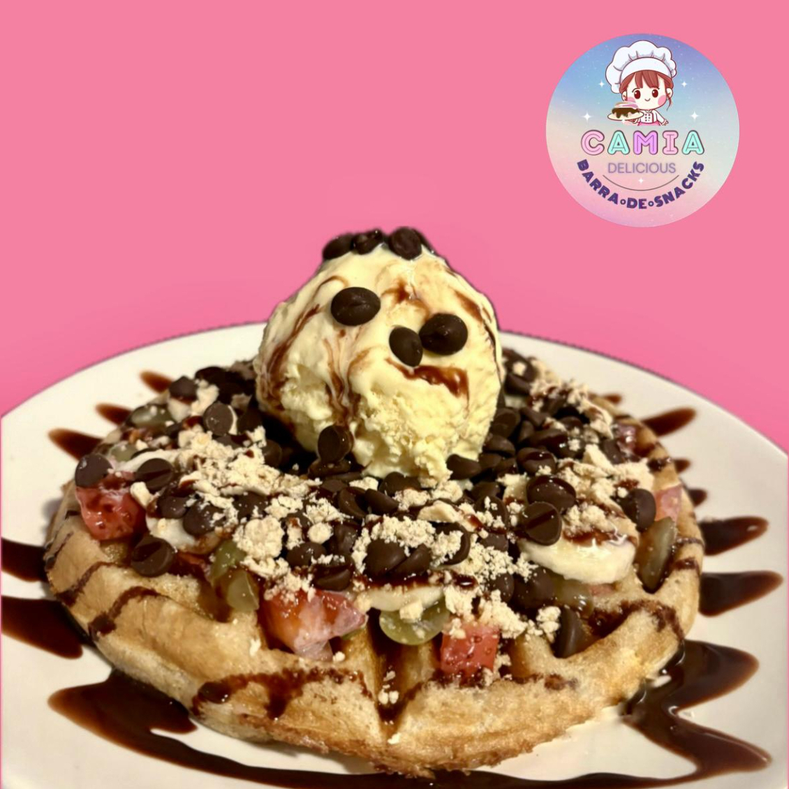 Exquisito waffle con frutas naturales, toppings y mucho más.