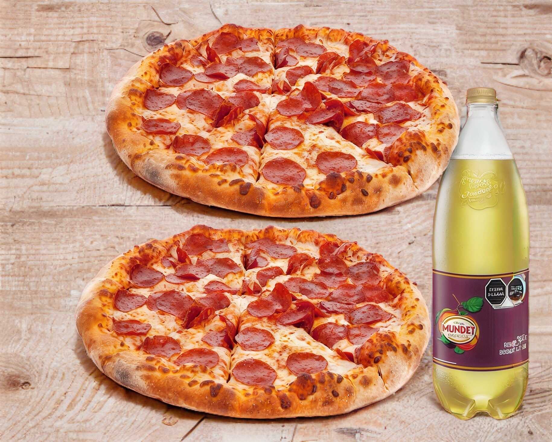 Pizza Mediana y refresco 355 ml puedes elegir el sabor de refresco pero esta sujeto a disponibilidad