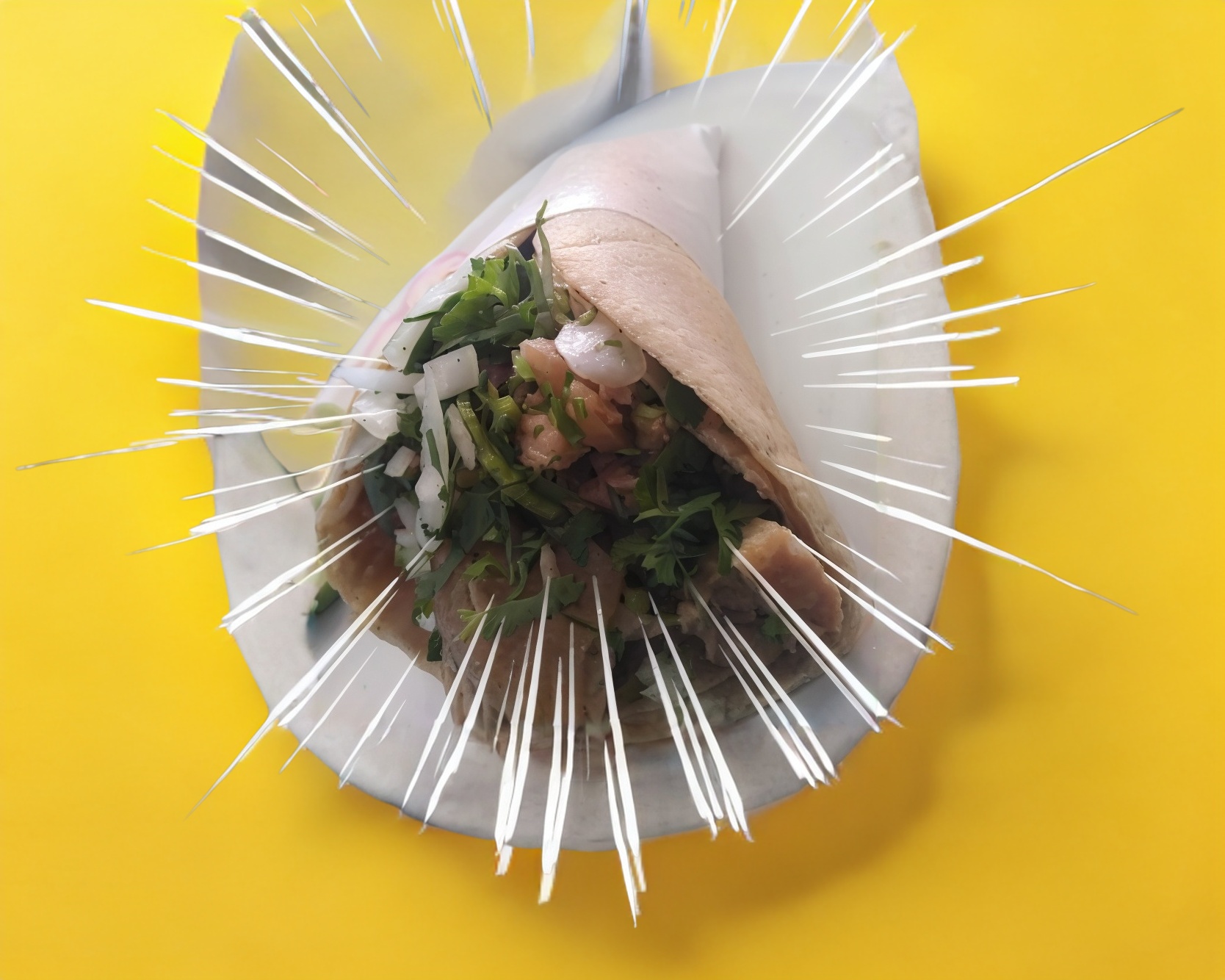 Lleva cilantro, cebolla, salsa.