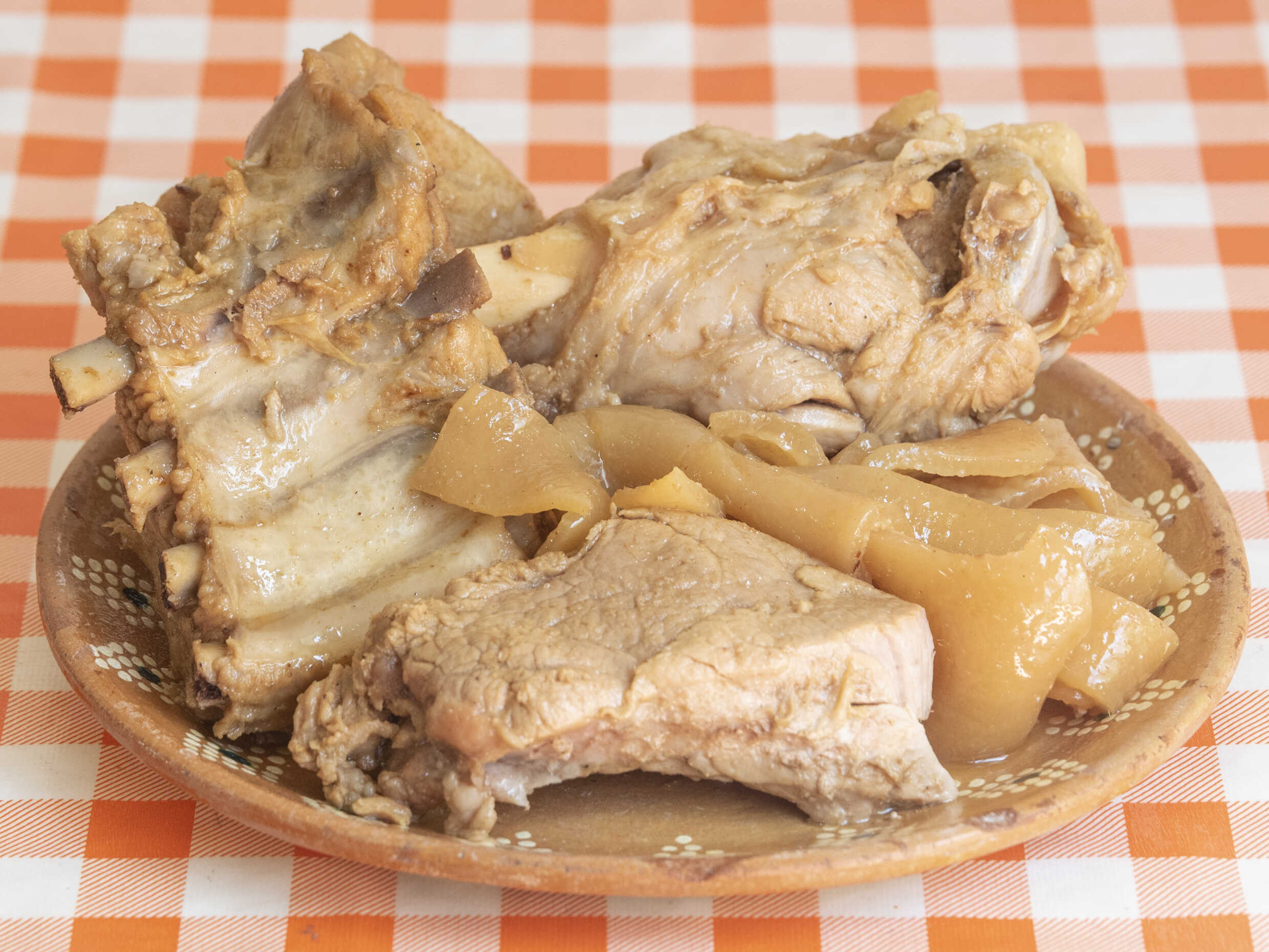 1 lt. con chamorro de barbacoa o hueso con carne, 8 tortillas y 1 cemita.