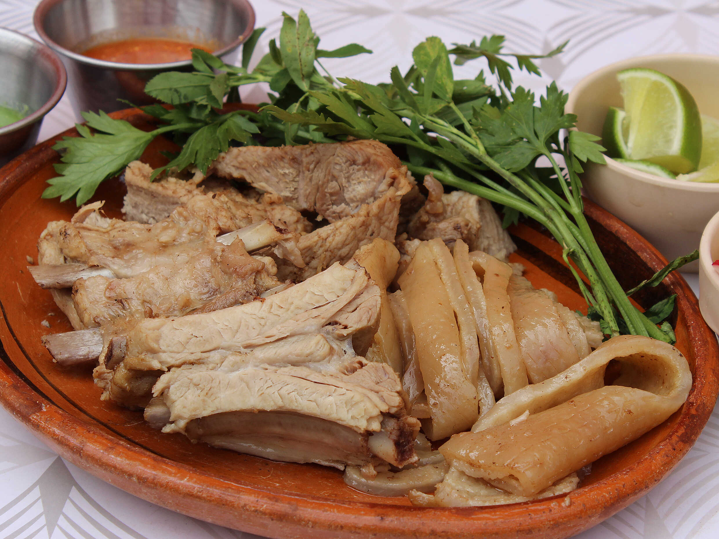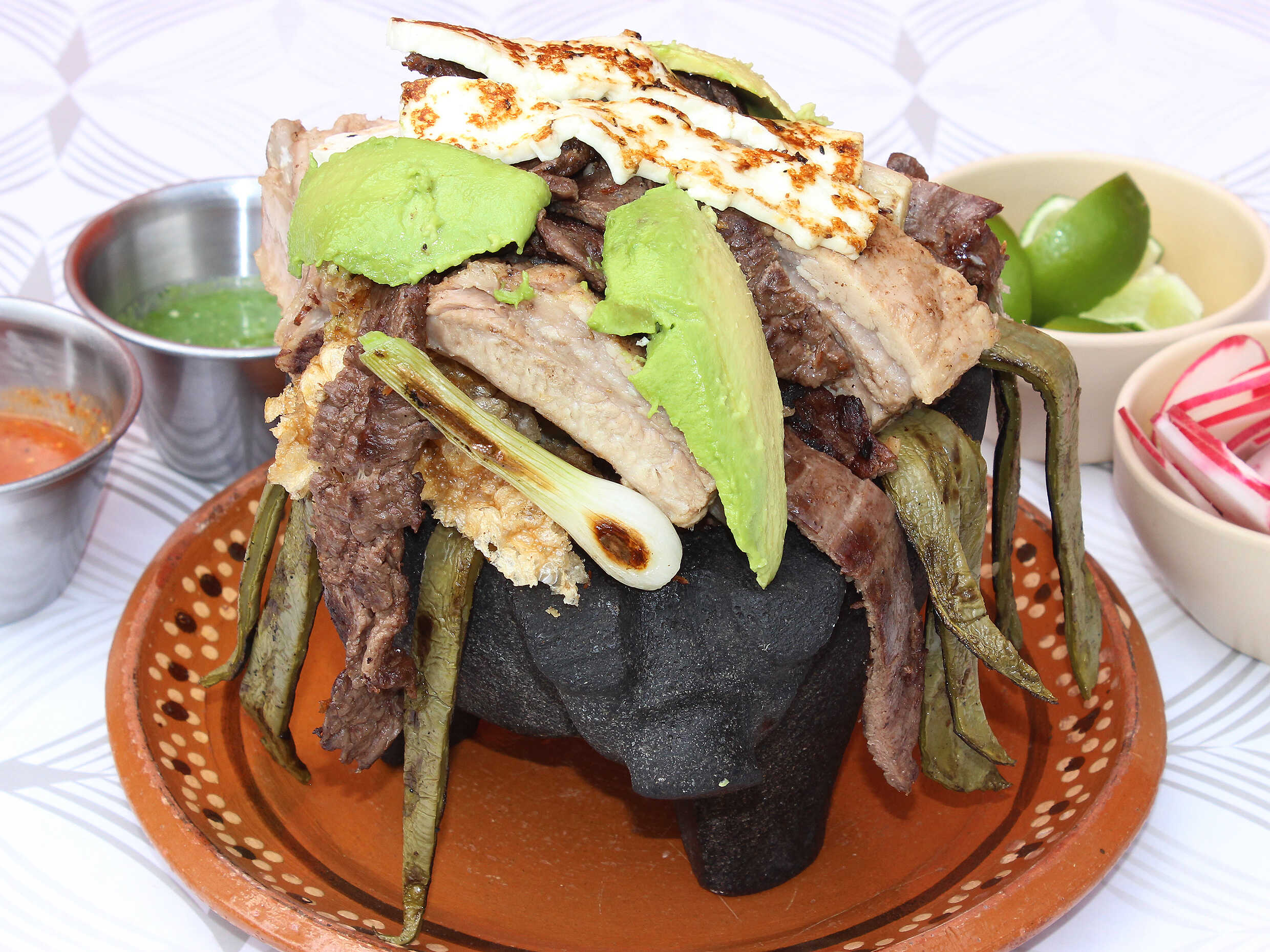 Preparado con carne de barbacoa, panza enchilada, garbanza, 1 pan cemita, 8 tortillas, cebolla y cilantro.