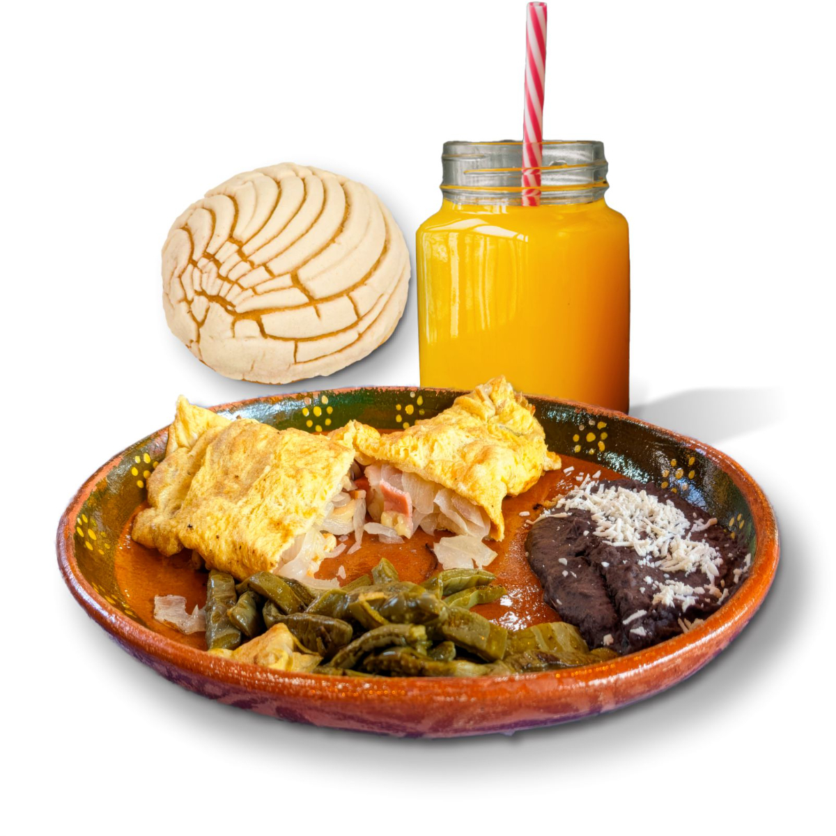 Molletes*1 + Jugo de Naranja (500ml)*1 + Pan Dulce*1