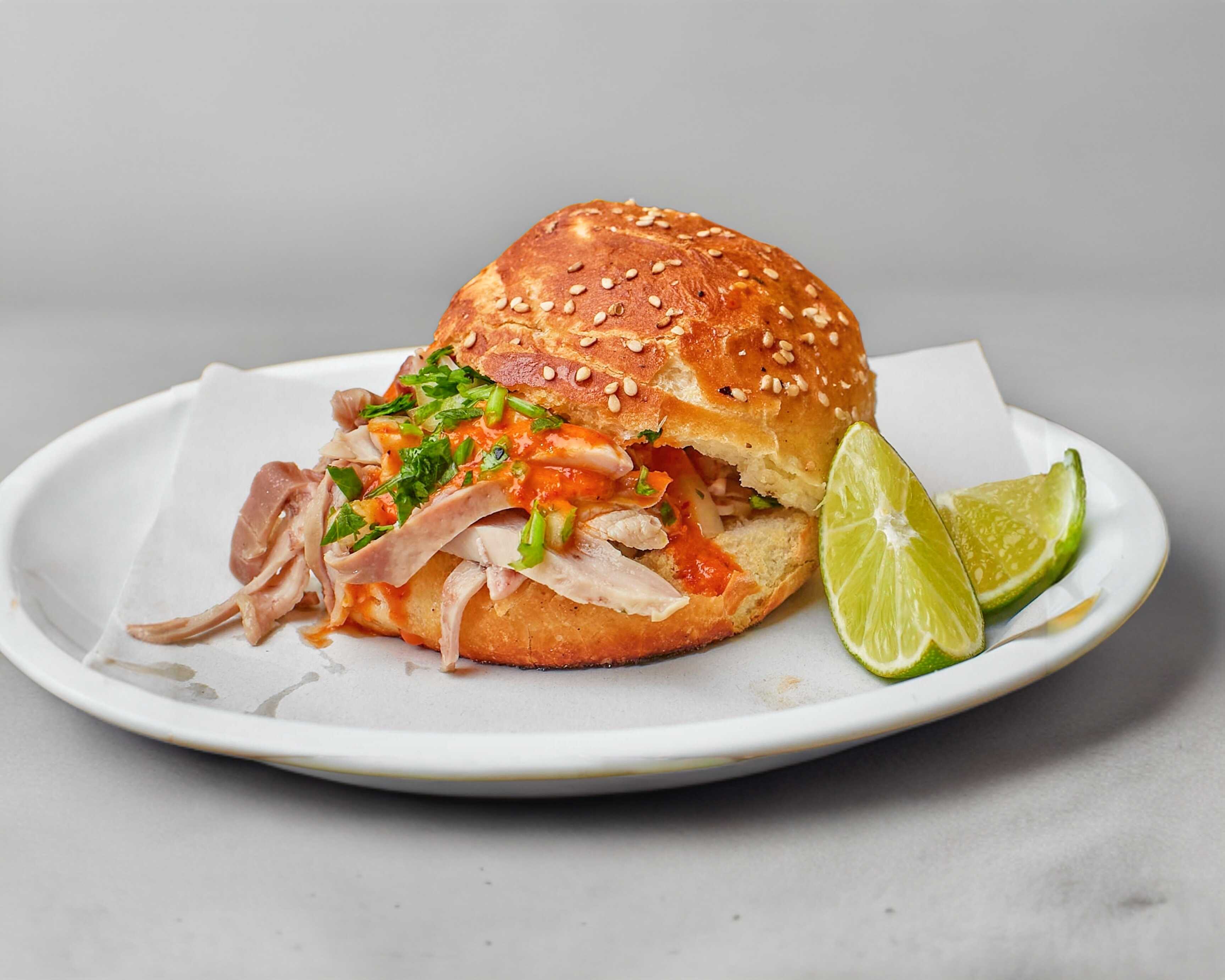 Cemitas Especiales elige tu proteína, cebolla y cilantro salsa vero o roja tu elijes + 1 Cemita de Cabeza cebolla y cilantro salsa vero o roja tu elijes.
