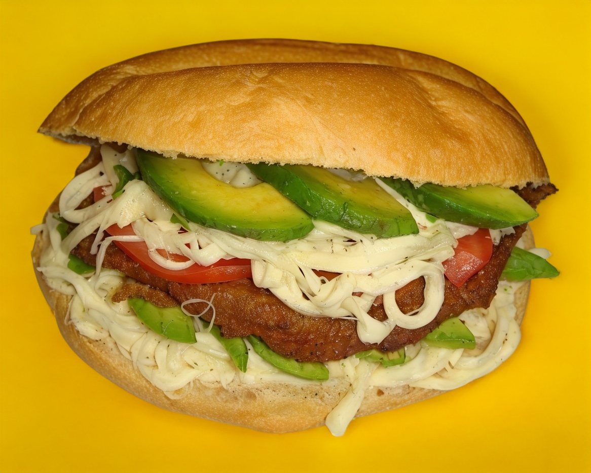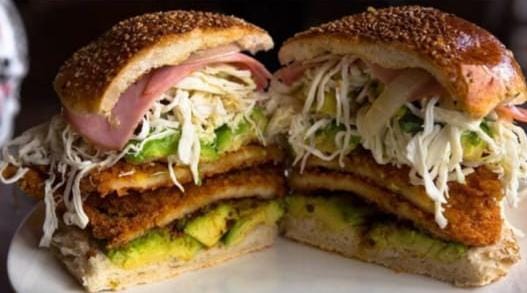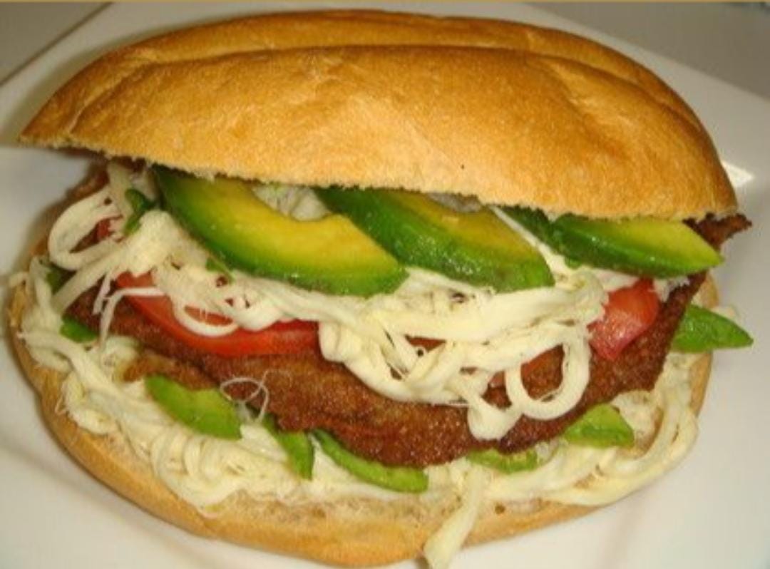 Milanesa de carne enchilada, salchicha, jamón, quesillo, aguacate, jitomate, rajas o chipotle.