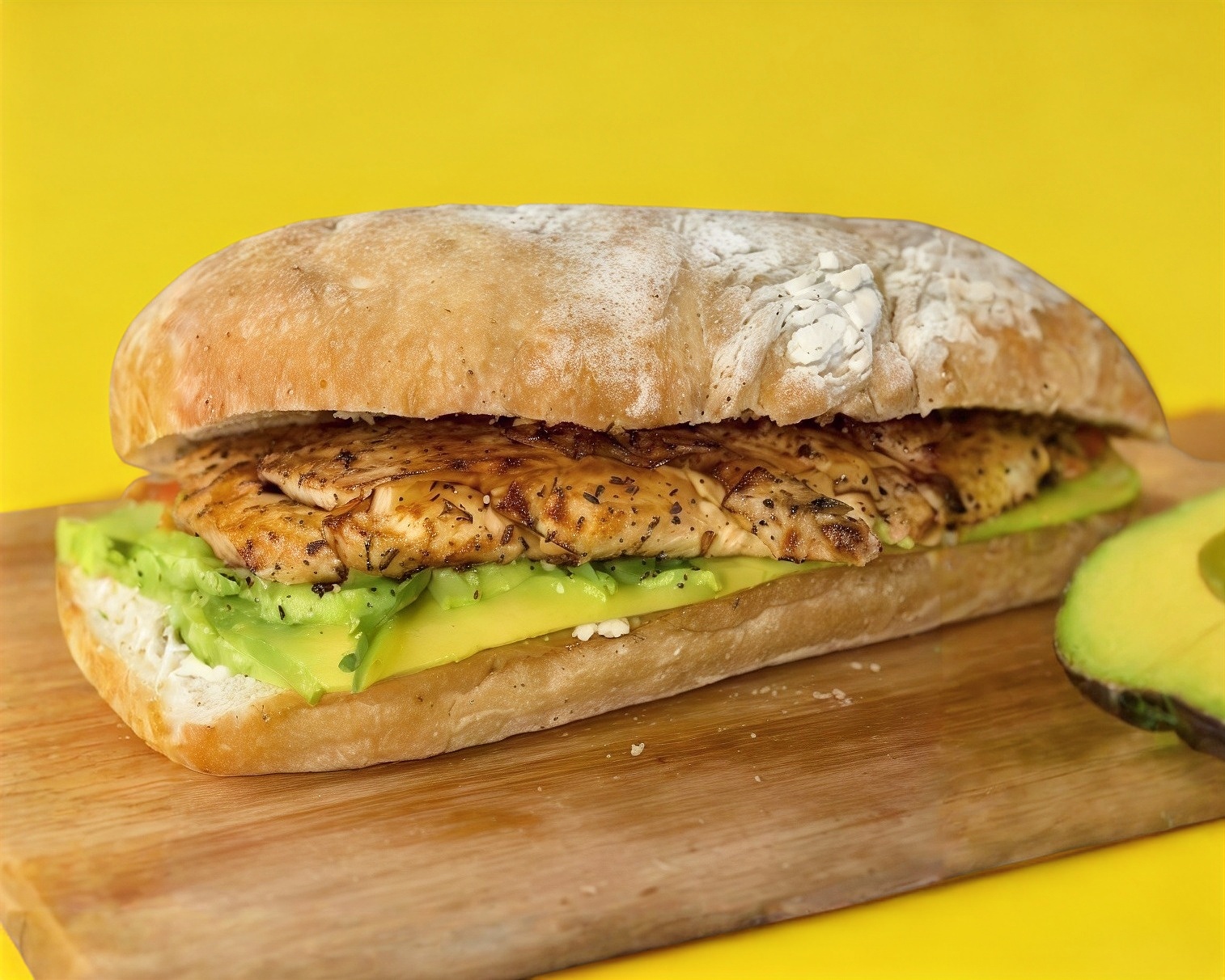 Pechuga asada, lechuga, jitomate, aguacate y manchego.