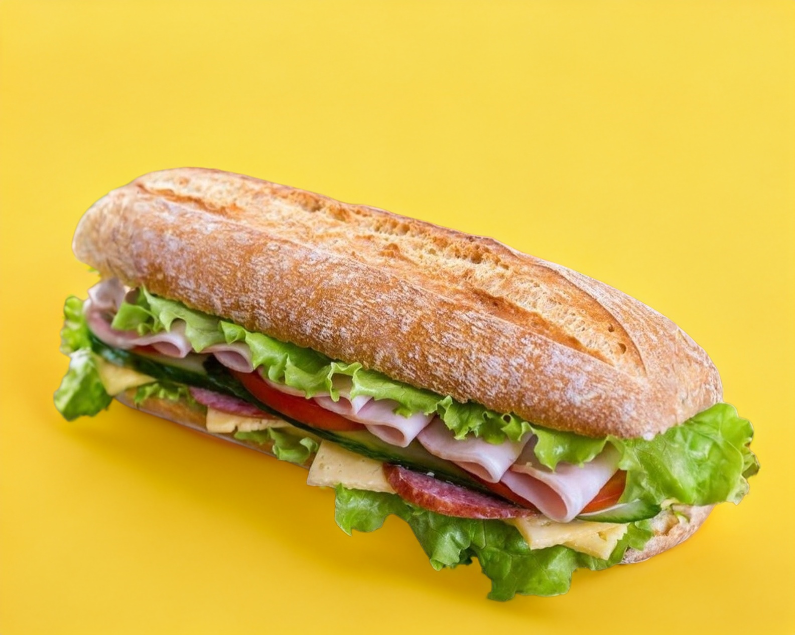 Jamón, salami, jamón serrano, manchego, lechuga, aguacate y jitomate.