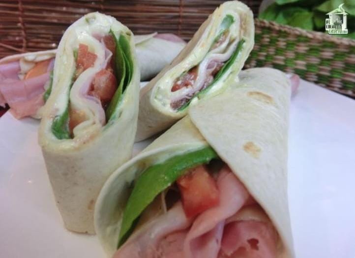 Pechuga asada, queso manchego, lechuga, aguacate y jitomate.