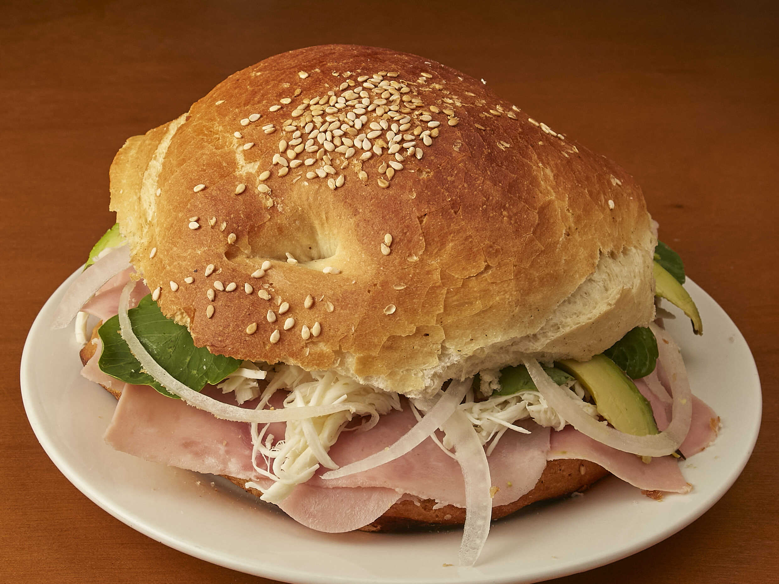 Pan tradicional de la cemita poblana integrada por jamón, aguacate, quesillo, pápalo, cebolla y picante a elegir.