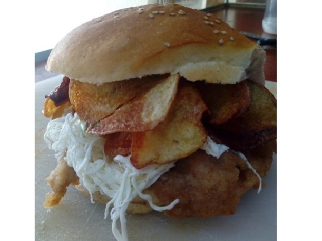Milanesa de pollo, aguacate, frijoles, mayonesa, cebolla, jitomate, quesillo y picante a elección.
