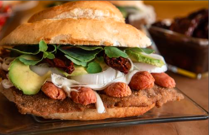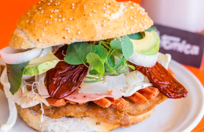 milanesa, pata, jamón, salchicha, quesillo, aguacate, cebolla, papalo.