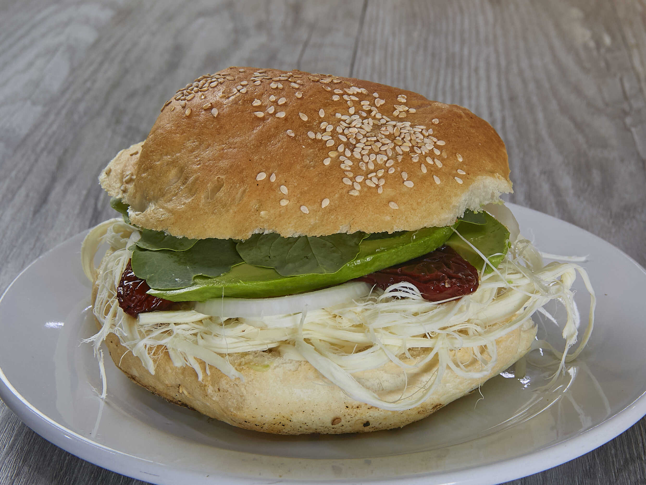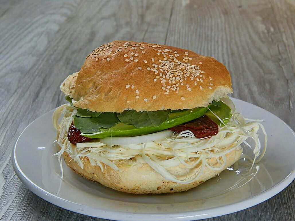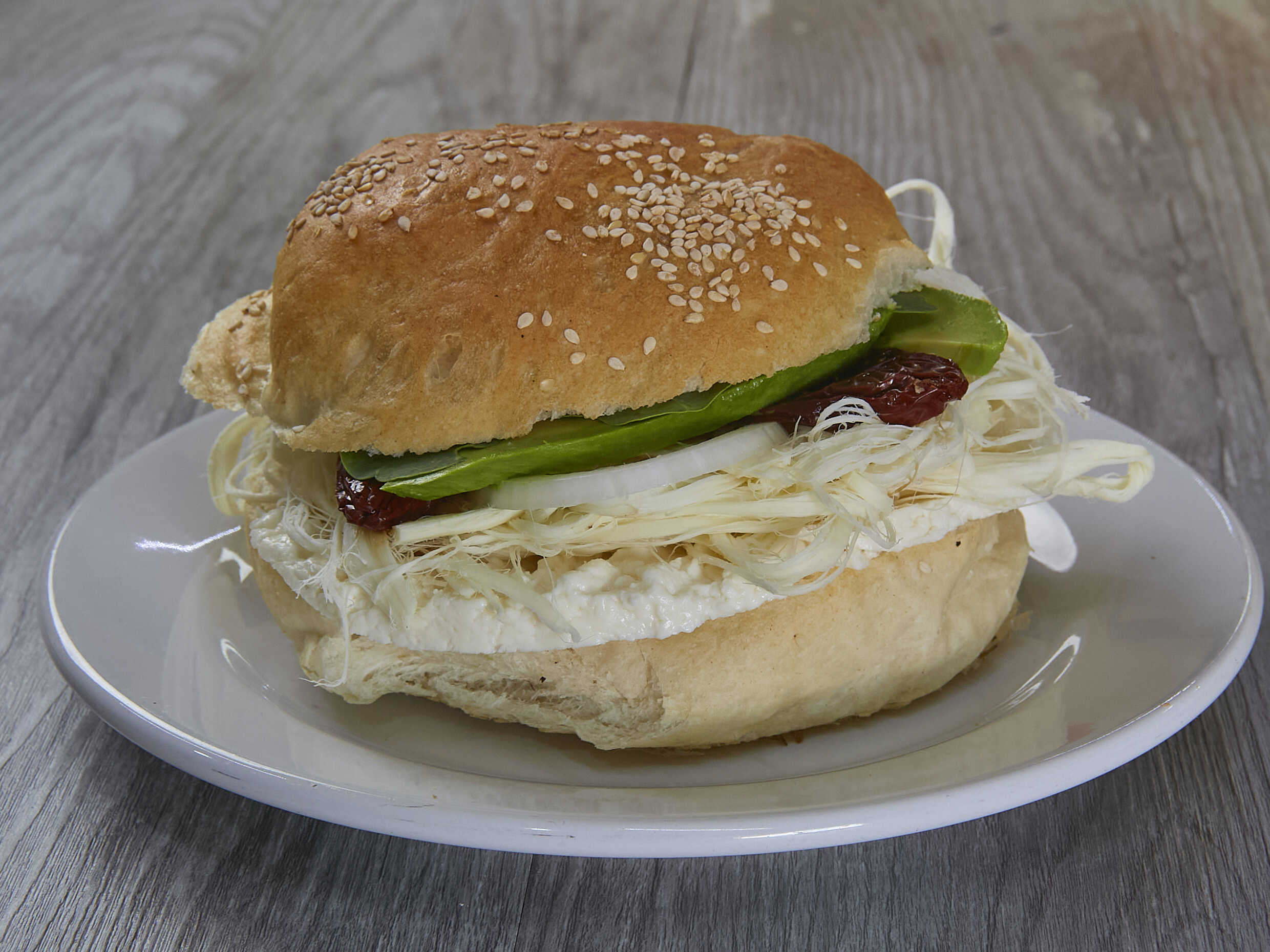 3 cemitas de tus ingredientes favoritos. Los ingredientes que llevan son (quesillo, cebolla, chipotles, aguacate, pápalo)