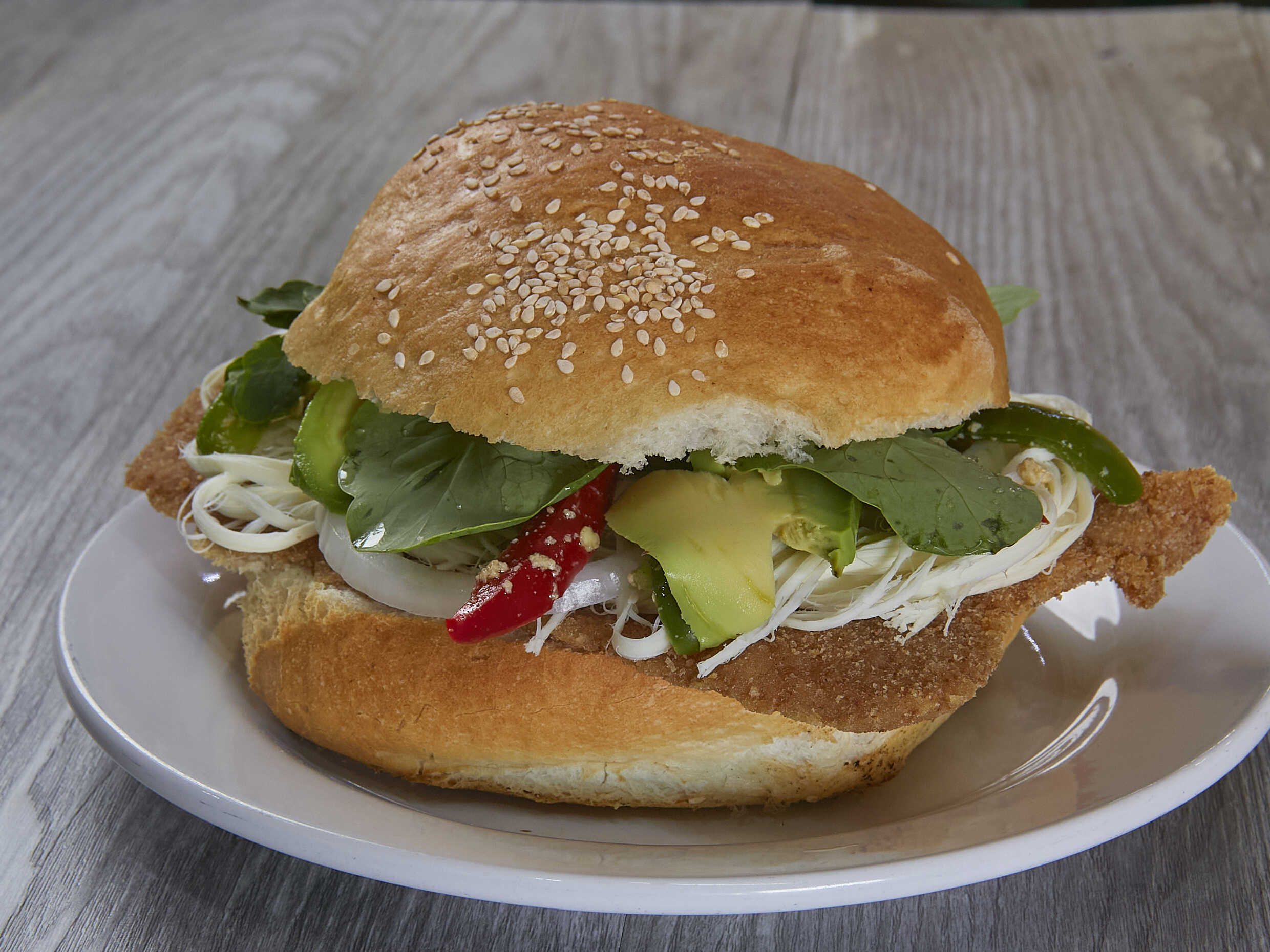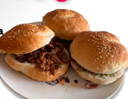 (3 cemitas de milanesa de puerco) con quesillo, cebolla, picante, aguacate, pápalo