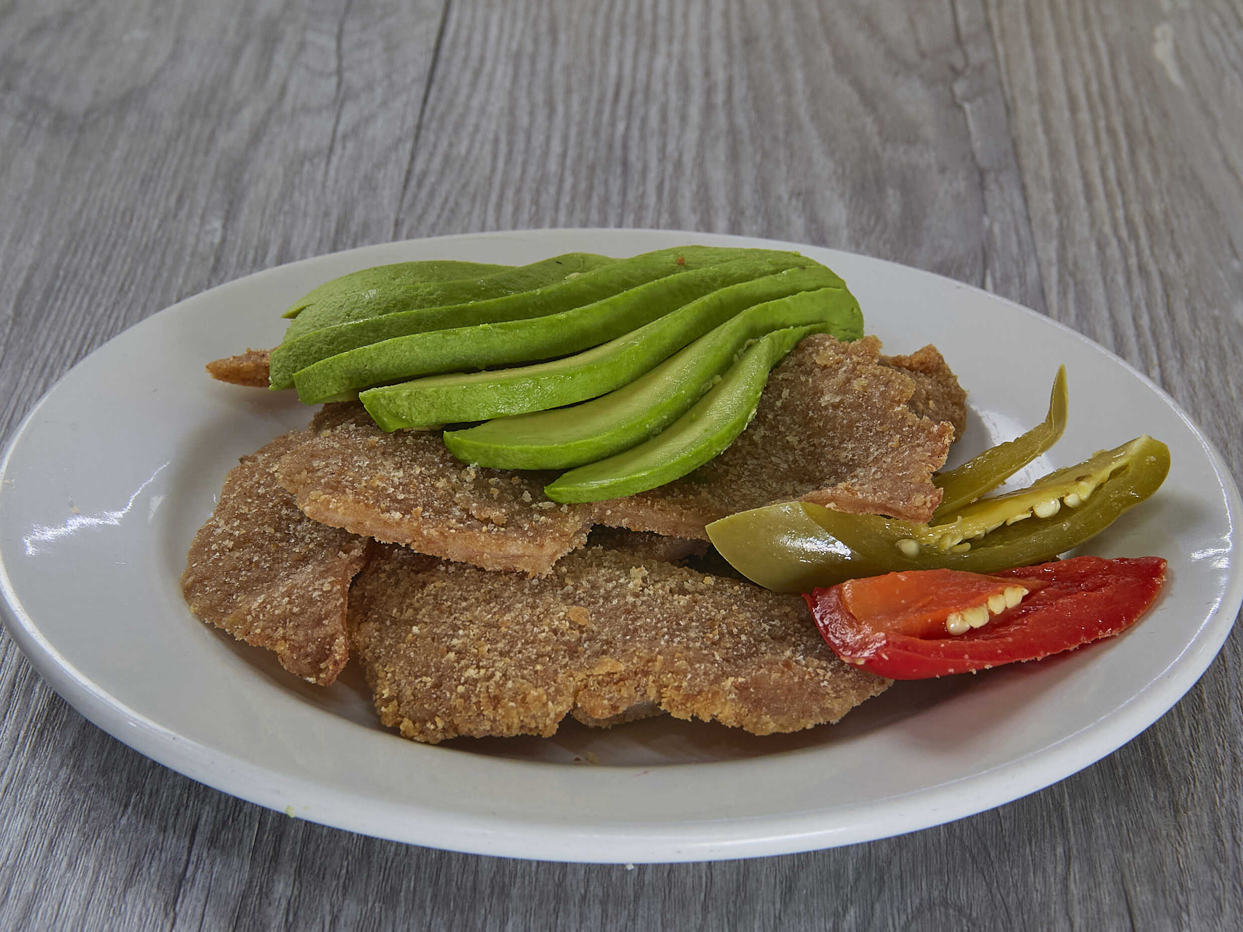 2 Milanesa, pata, jamón, quesillo, cebolla, picante, aguacate y pápalo,