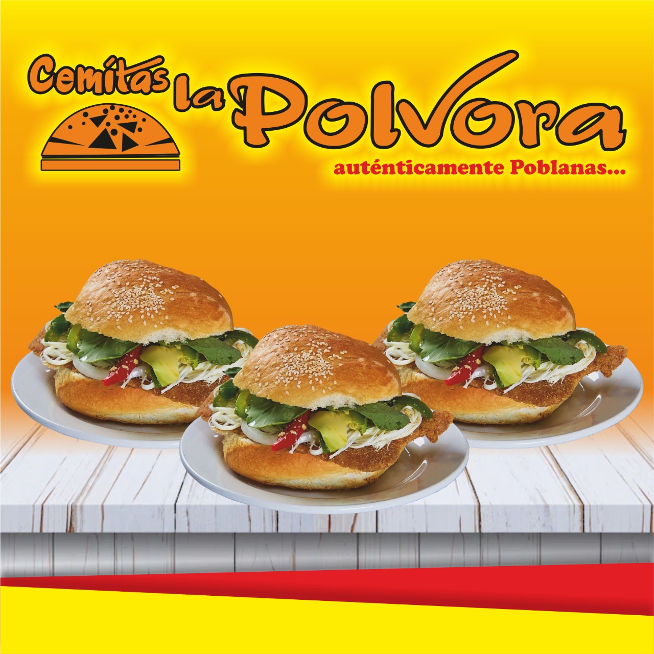 (3 cemitas super pólvora, milanesa de puerco, pata, jamón, salchicha, queso) con quesillo, cebolla, picante, aguacate, pápalo